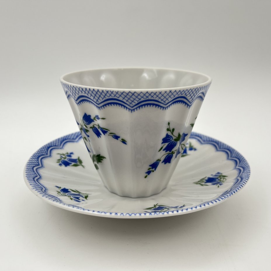 Пара чайная "Колокольчики", форма "Лучистая", фарфор, деколь, Ленинградский фарфоровый завод (ЛФЗ), СССР, 1970-1991 гг.