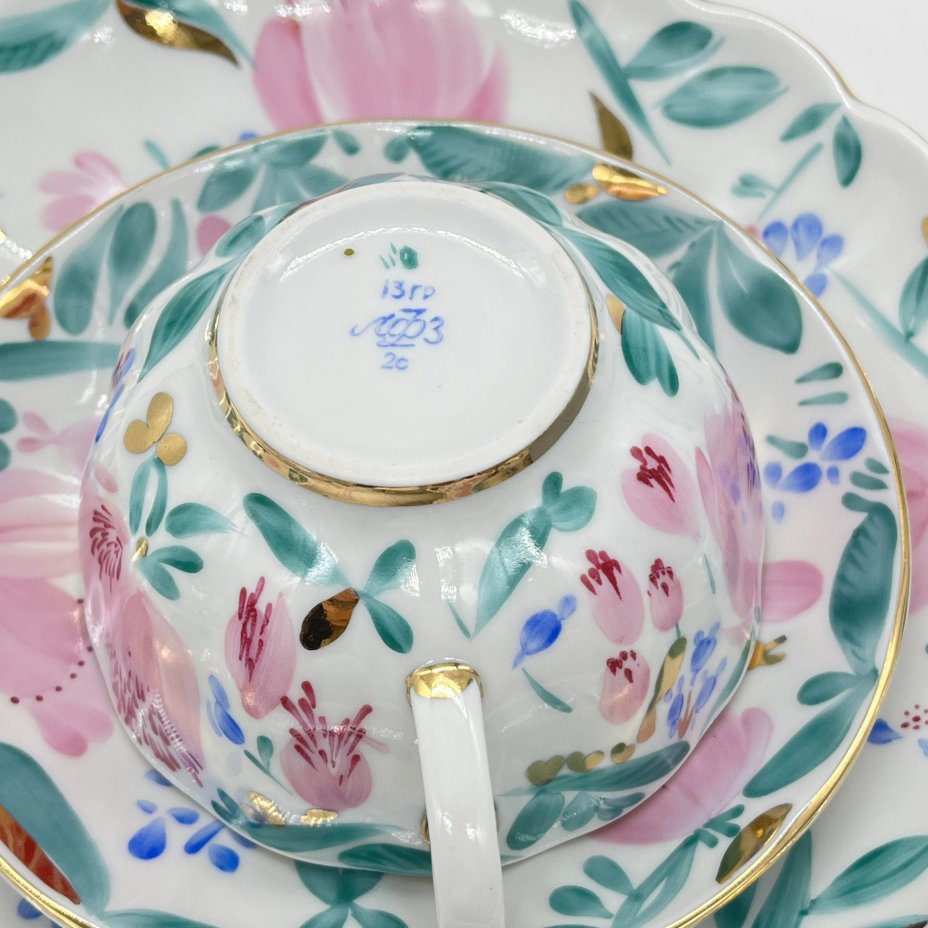 Пара чайная "Сад" с золотистой каймой, фарфор, золочение, Императорский фарфоровый завод (ИФЗ), СССР, 2006-2023 гг.
