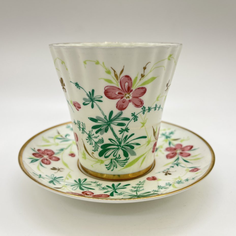 Кофейная пара с цветочным декором, форма "Волна", автор формы Э.М. Криммер, фарфор, деколь с подрисовкой, Императорский фарфоровый завод (ИФЗ), Российская Федерация, 1990-2010 гг.