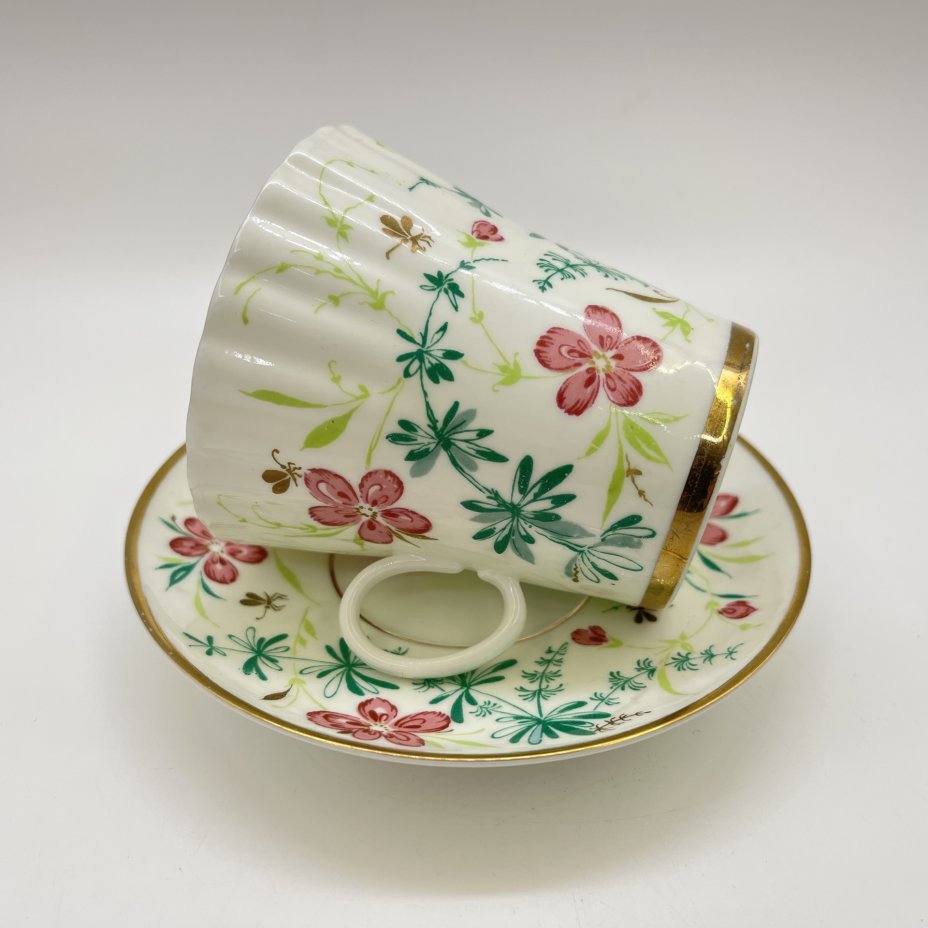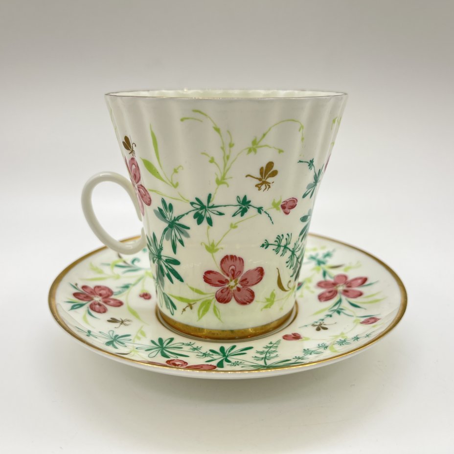 Пара кофейная "Розовые веточки" ("Золотые бабочки"), форма "Майская", автор формы Э.М. Криммер, автор рисунка В.Г. Богданов, фарфор, деколь, золочение, Ленинградский фарфоровый завод (ЛФЗ), СССР, 1970-1992 гг.