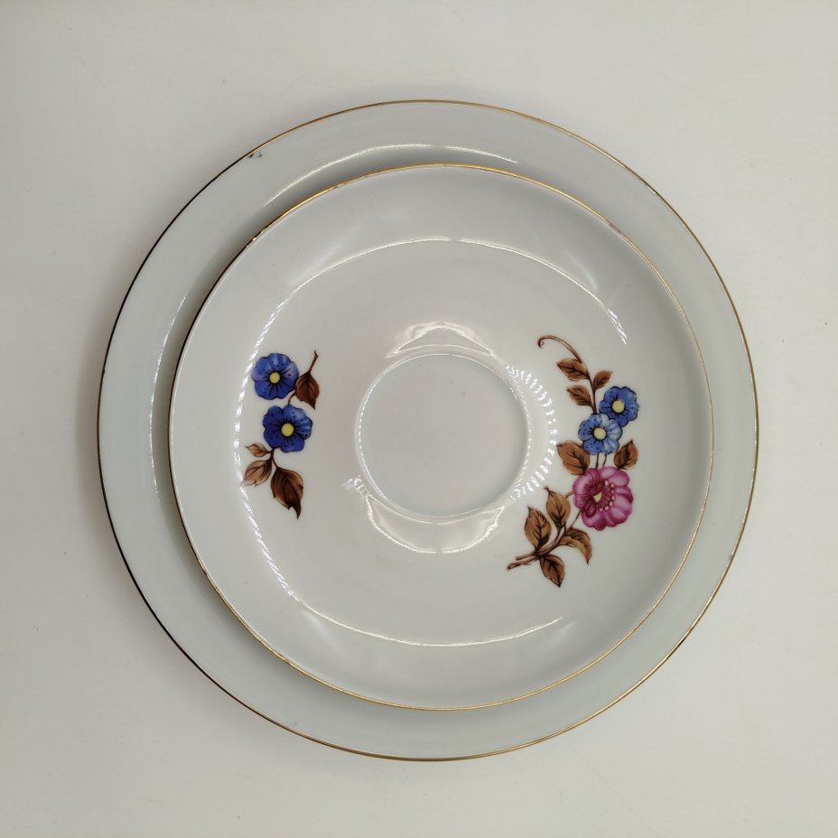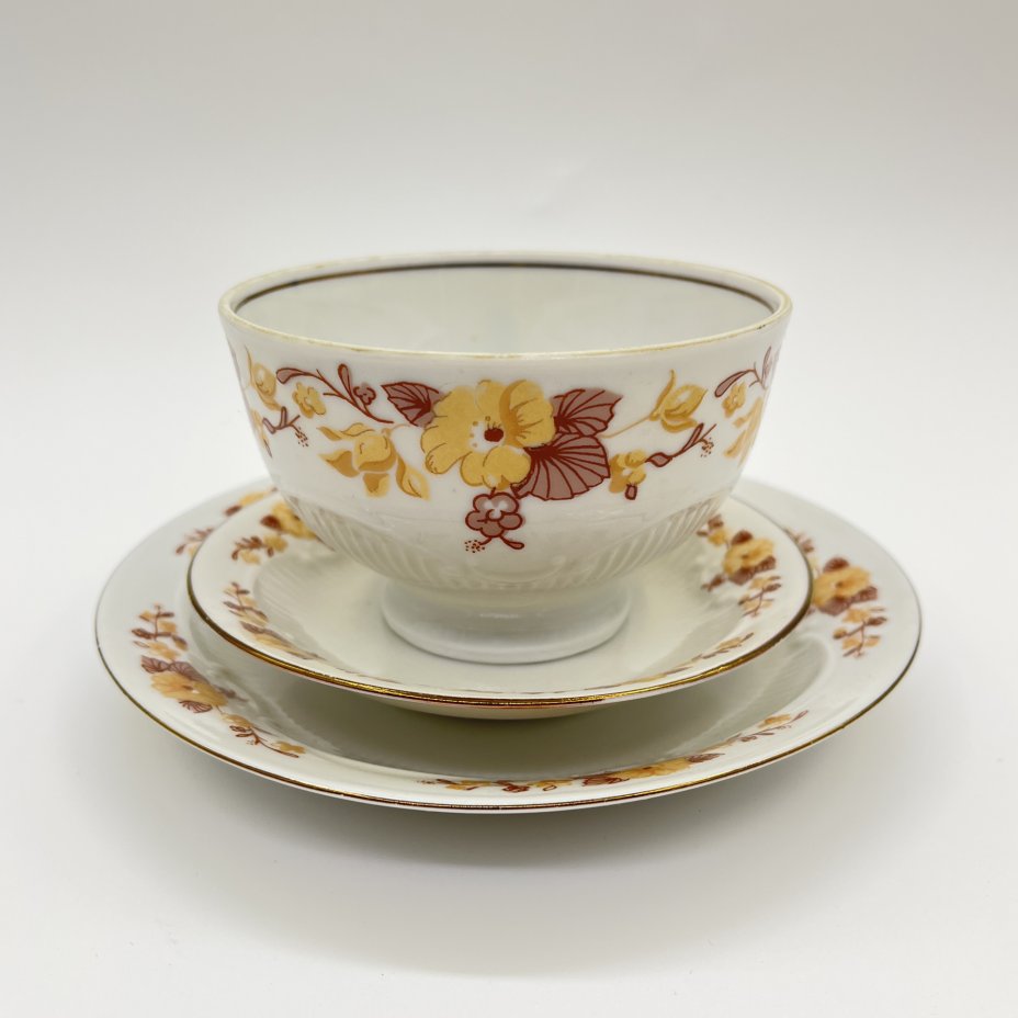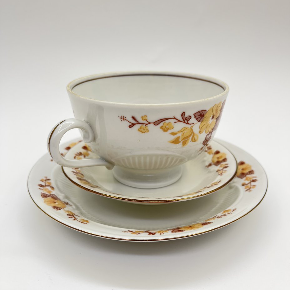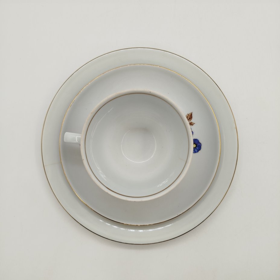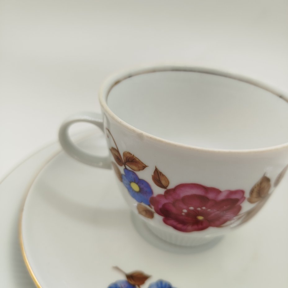 Чайная тройка с цветочным декором, фарфор, золочение, деколь, Colditz (Кольдиц), ГДР, 1970-1980 гг.