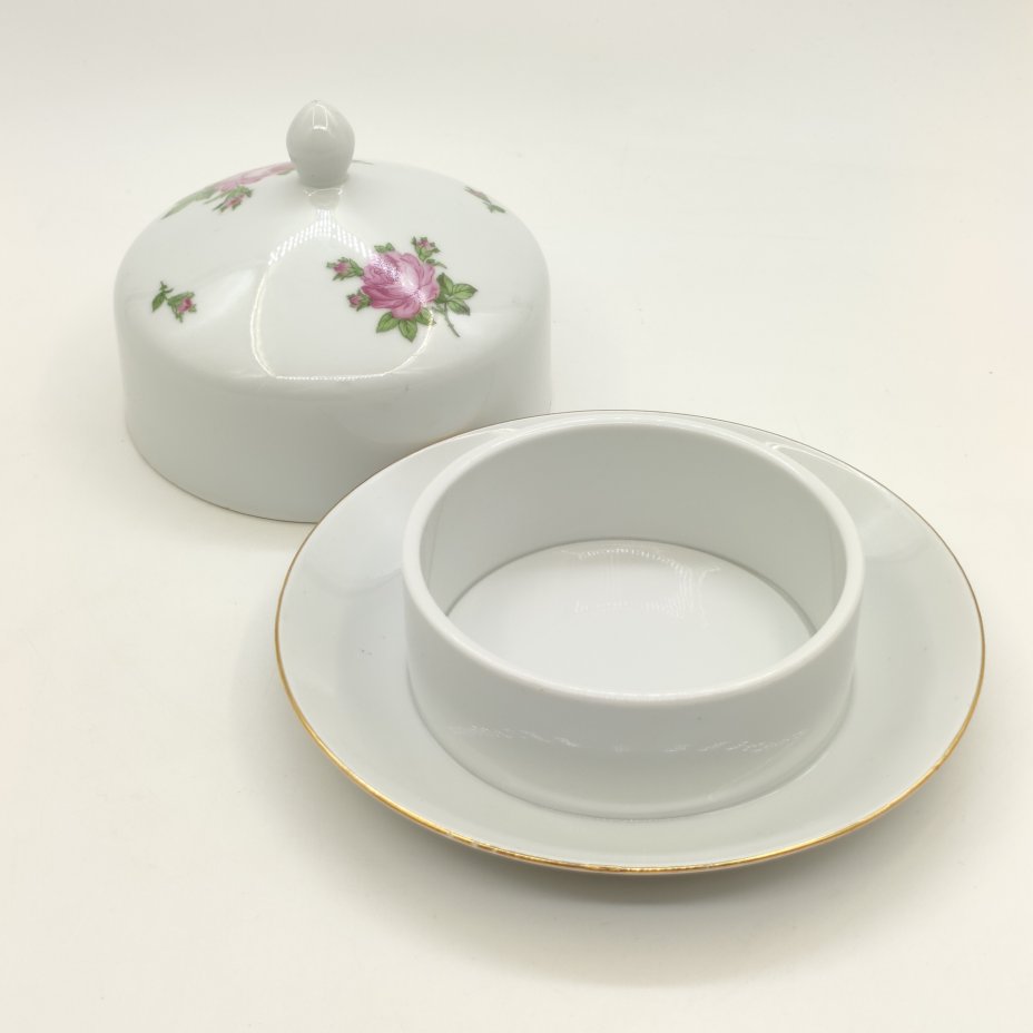 Масленка, украшенная изображением роз, фарфор, деколь, золочение, Colditz (Кольдиц), ГДР, 1970-1980 гг.