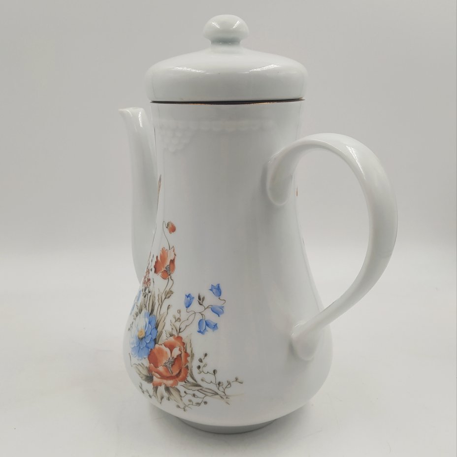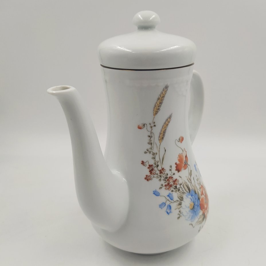 Чайник/кофейник с декором в виде полевых цветов, фарфор, деколь, золочение, Colditz (Кольдиц), ГДР, 1960-1990 гг.