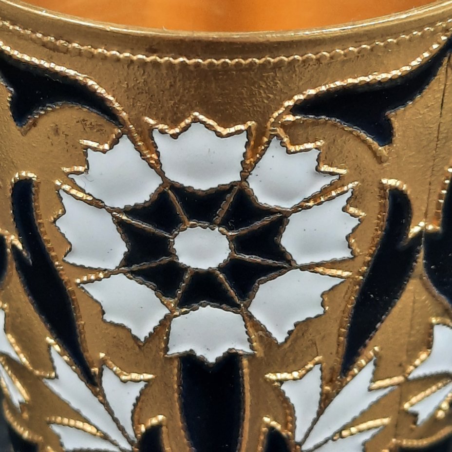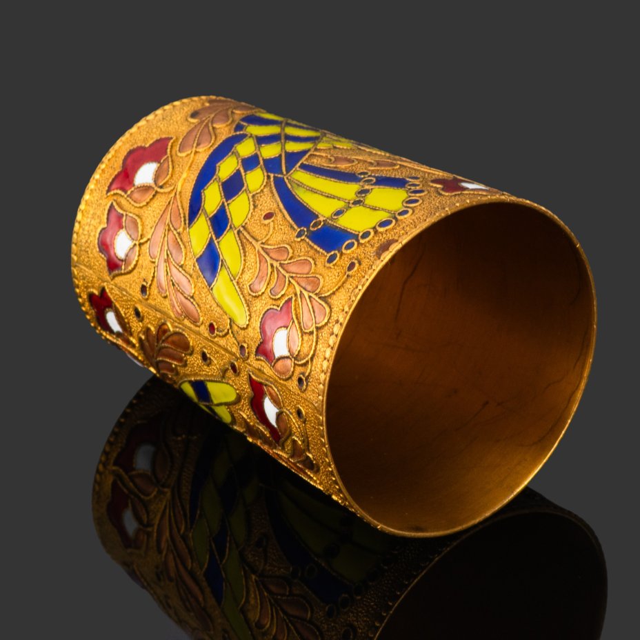 Стопка со стилизованным цветочным декором, латунь, эмали, золочение, Ленинградская ювелирная фабрика, СССР, 1960-1980 гг.