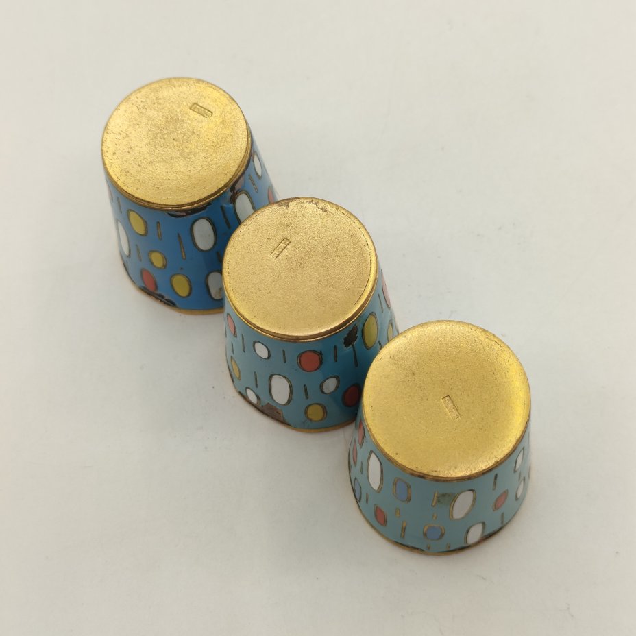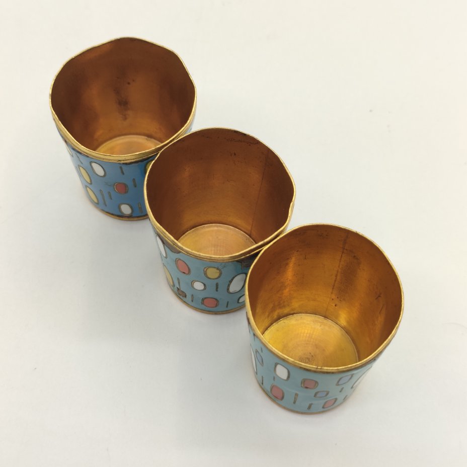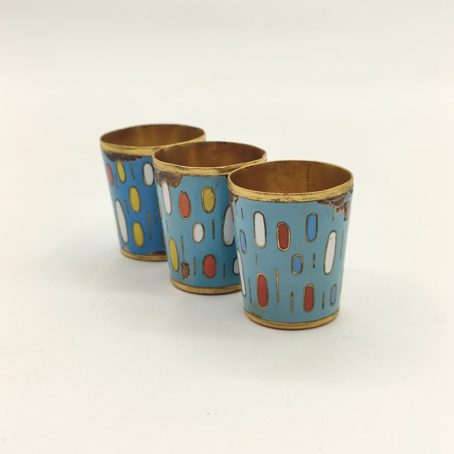 Набор из 3-х миниатюрных стопок с орнаментальным декором (в подборе), металл, золочение, эмаль, Ленинградская ювелирная фабрика, СССР, 1960-1980 гг.