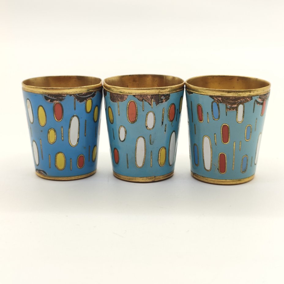 Набор из трех стопок с растительным декором (в подборе), латунь, эмали, Ленинградская ювелирная фабрика, СССР, 1950-1970 гг.