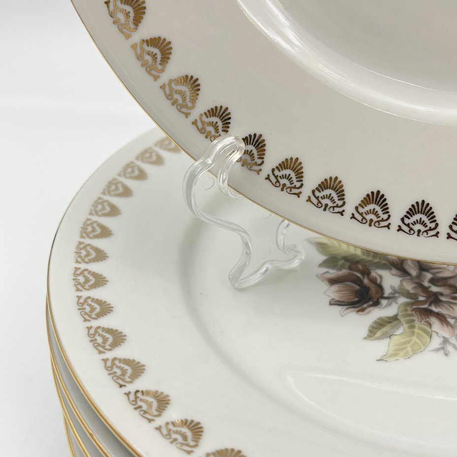 Набор суповых (глубоких) тарелок с цветочным декором на 6 персон, фарфор, деколь, золочение, Moritz Zdekauer (MZ), Чехословакия, 1970-1990 гг.