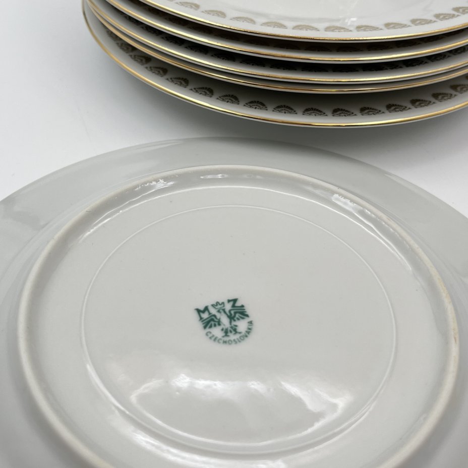 Набор из шести десертных/закусочных тарелок с цветочным декором, фарфор, деколь, золочение, Moritz Zdekauer (MZ), Чехословакия, 1970-1990 гг.