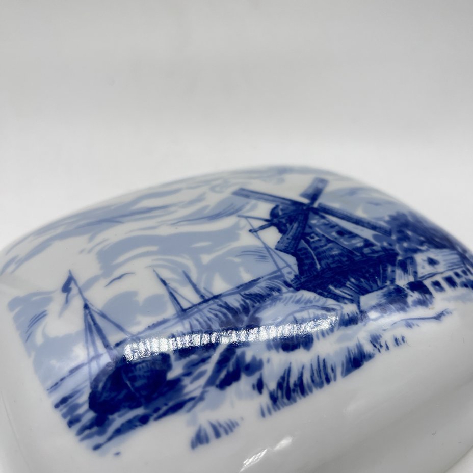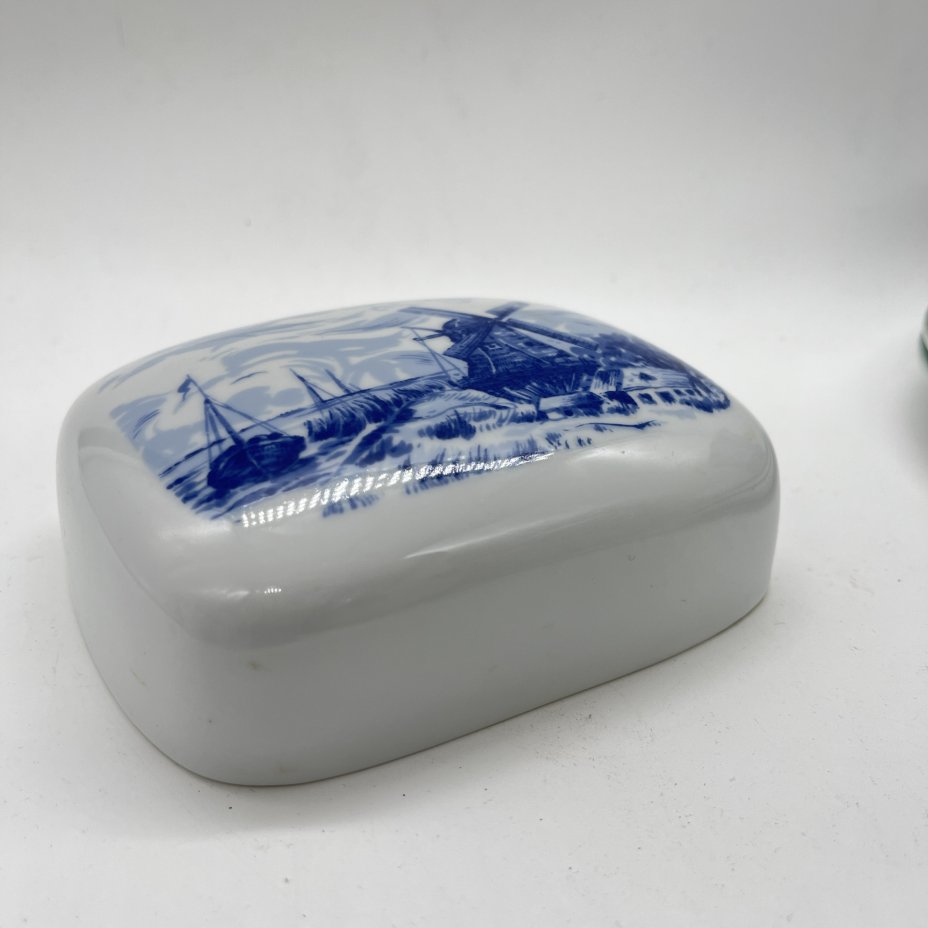 Крышка от масленки с декором "Мельница", фарфор, деколь, Freiberger Porzellan, Германия, 1970-1995 гг.