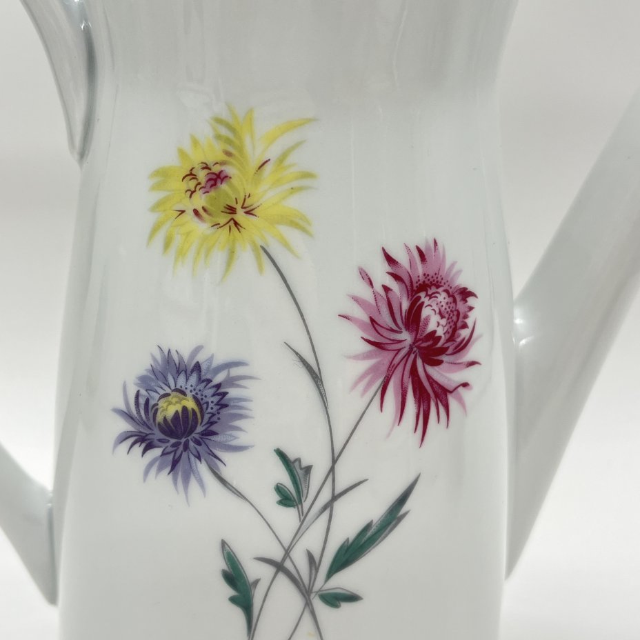 Кофейник с цветочным декором, фарфор, деколь, золочение, Freiberger Porzellan, ГДР, 1970-1990 гг.