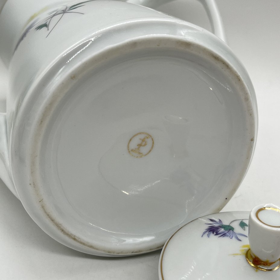Чайник доливной с цветочным декором, фарфор, деколь, золочение, Freiberger Porzellan, Германия, 1957-1972 гг.
