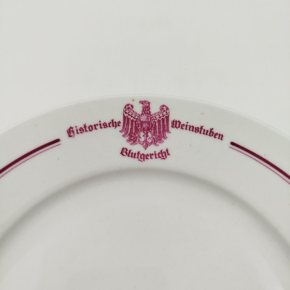 Тарелка обеденная "Historische Weinstuben Blutgericht", фарфор, деколь, Kaestner Saxonia, Германия, 1930-1940 гг.