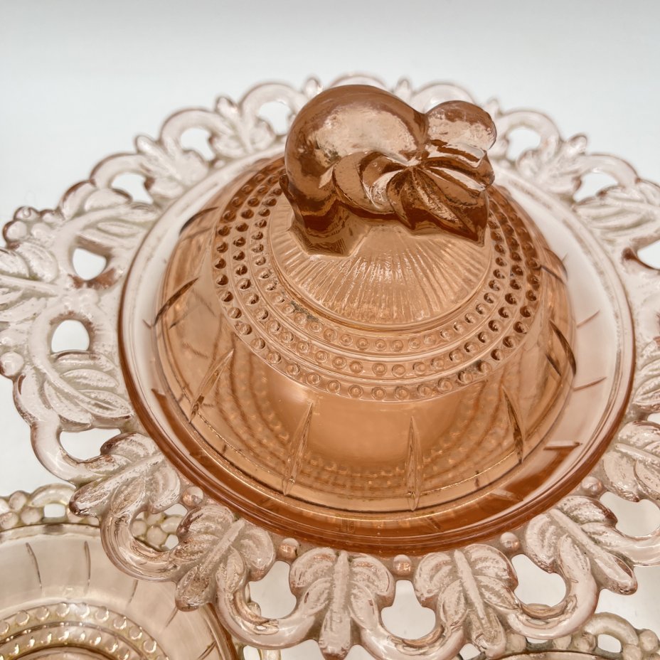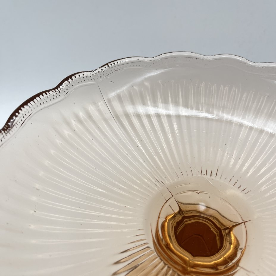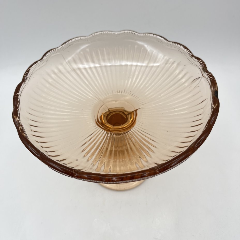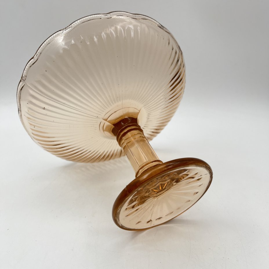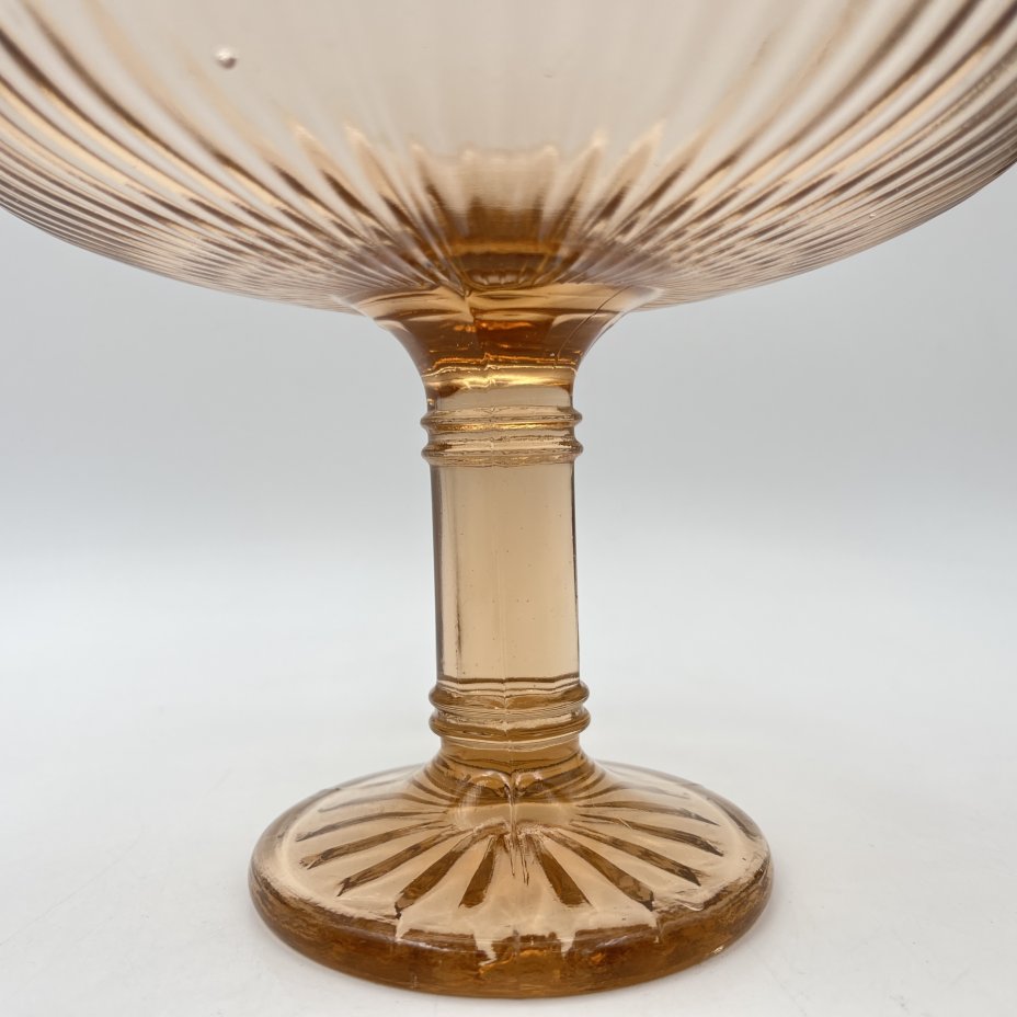 Вазочка на ножке (конфетница) карамельного оттенка, стекло, пресс, СССР, 1960-1990 гг.