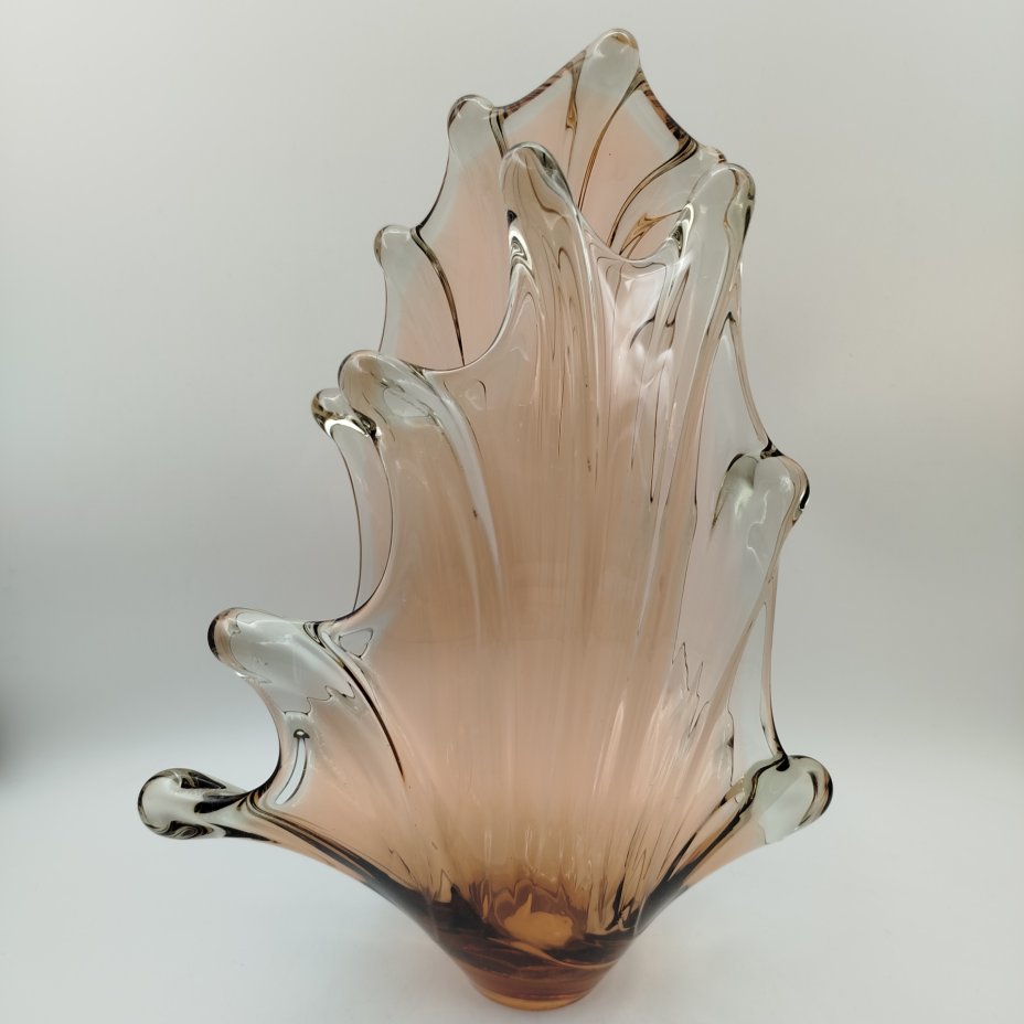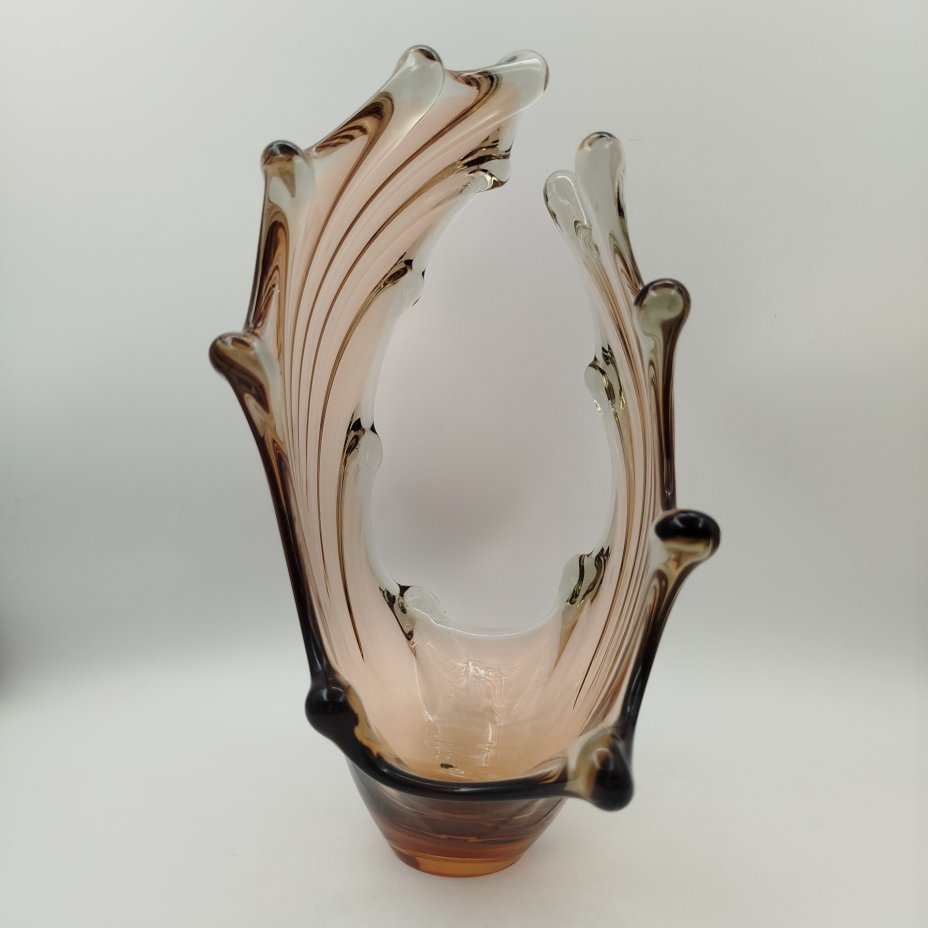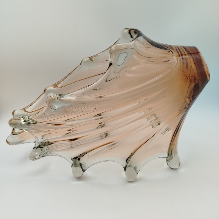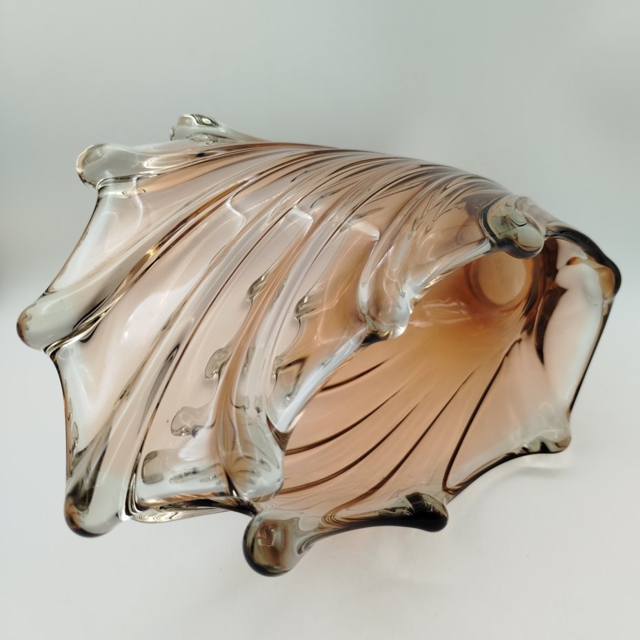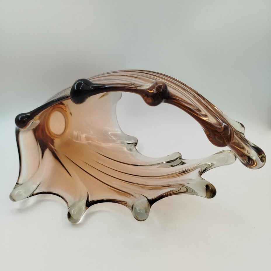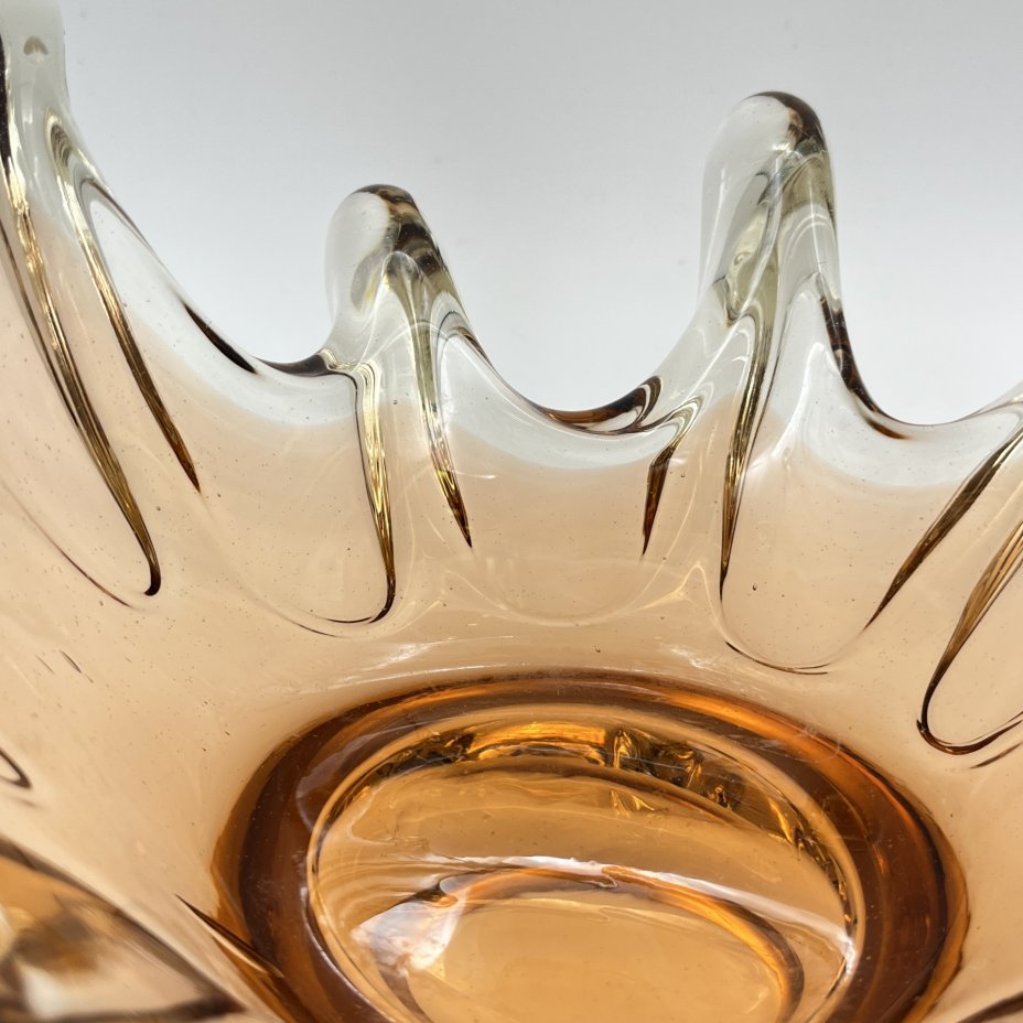 Ваза (конфетница) "Медуза" карамельного оттенка, стекло, гутная техника, СССР, 1970-1990 гг.
