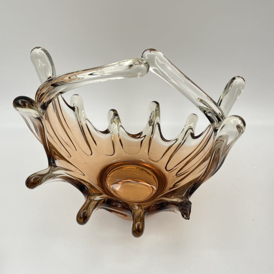 Корзиночка (конфетница) "Медуза" карамельного оттенка, стекло, гутная техника, СССР, 1970-1990 гг.