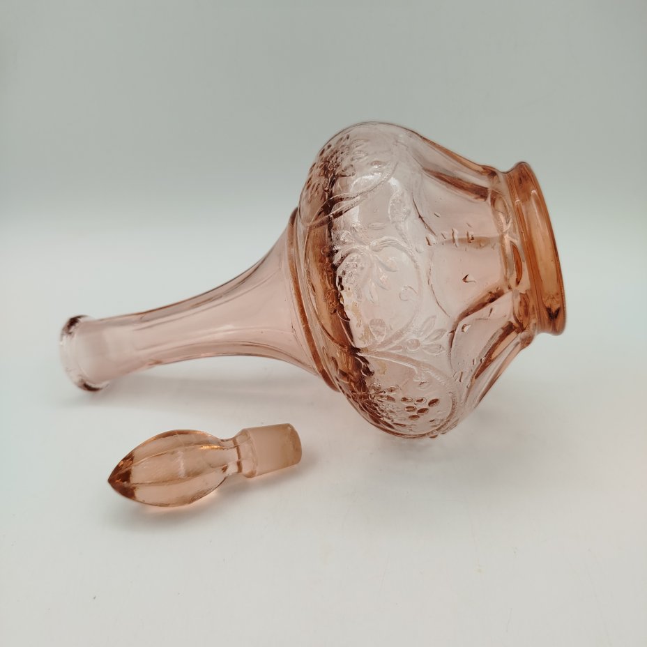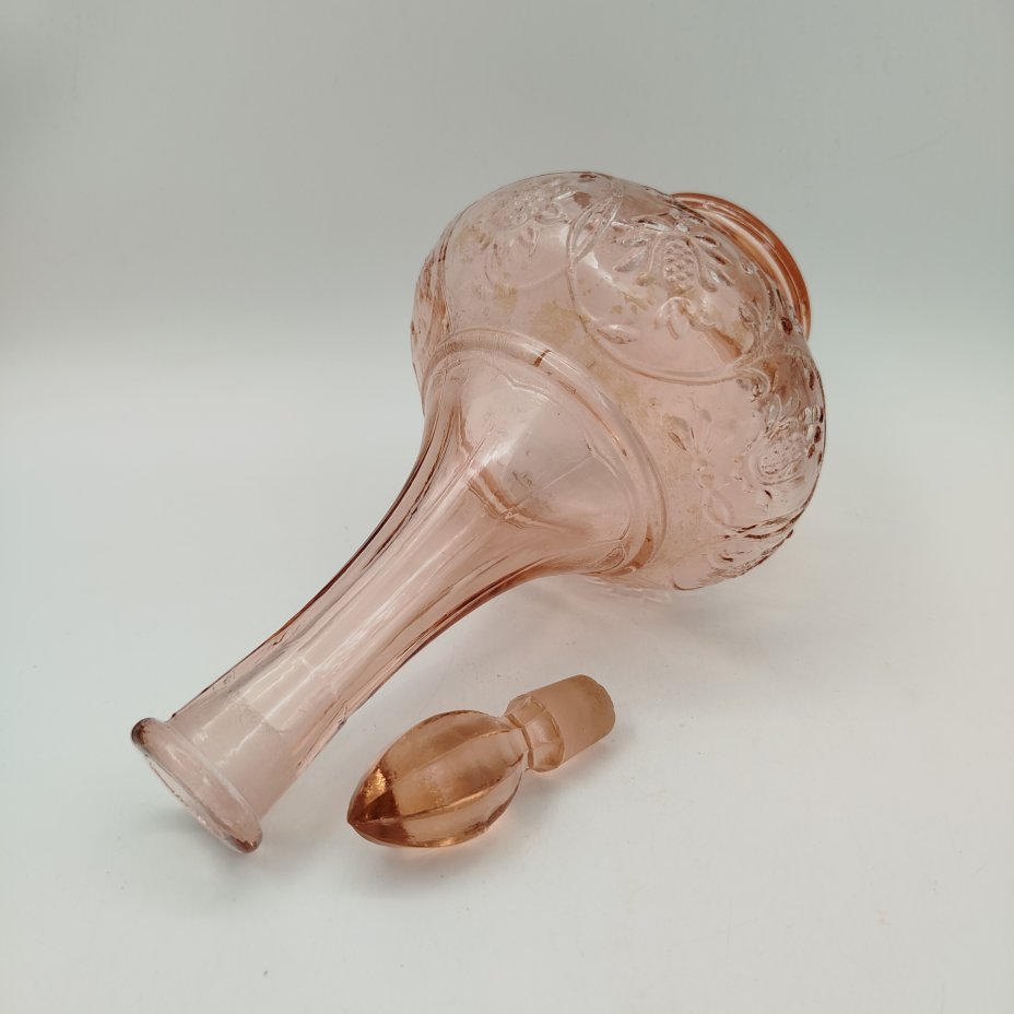 Штоф (графин) карамельного оттенка с изображением плодов на тулове, стекло, пресс, СССР, 1950-1970 гг.