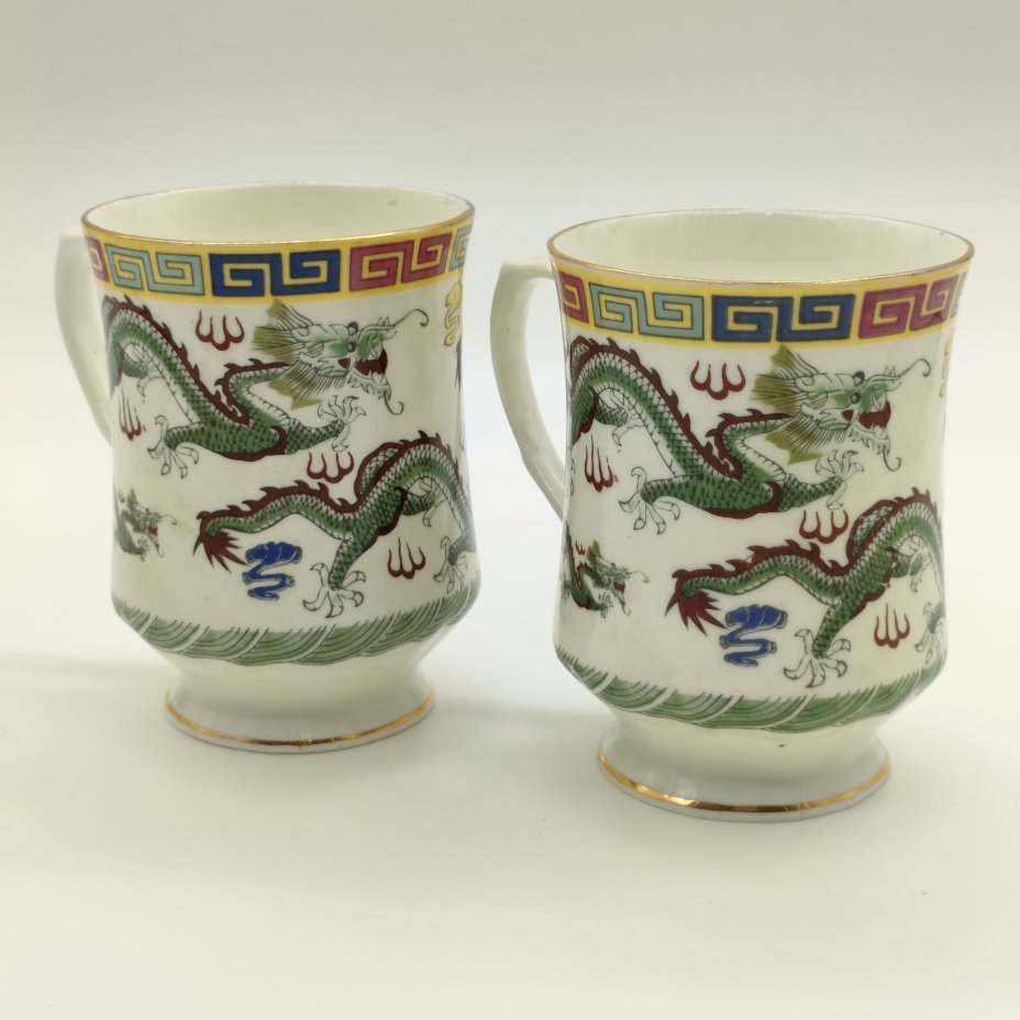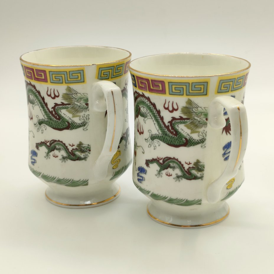 Пара чашек в китайском стиле с изображением драконов, фарфор, деколь, золочение, Hitkari Potteries, Индия, 1980-2000 гг.