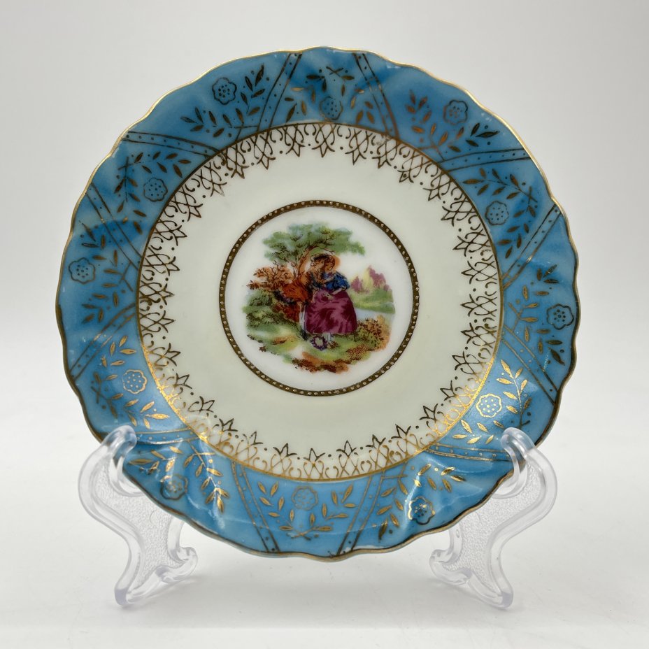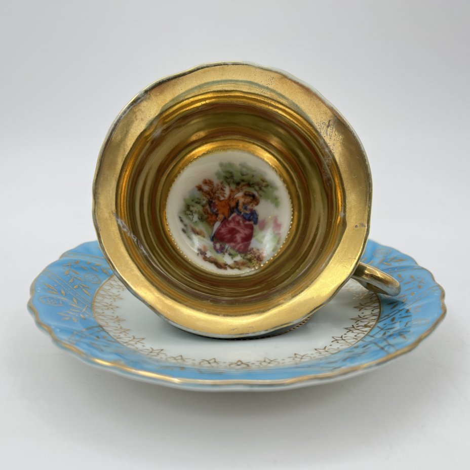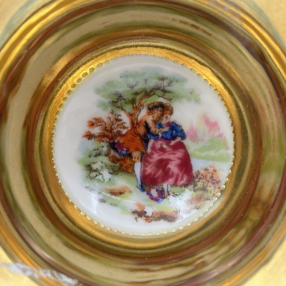 Пара кофейная, украшенная изображением галантной сценой, фарфор, деколь, золочение, Западная Европа, 1960-1980 гг.