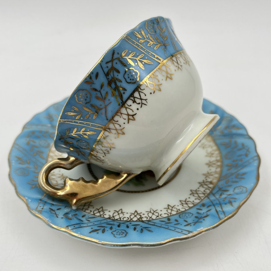 Пара чайная изящной формы с рельефным туловом и цветочным декором (с запасным блюдцем), фарфор, деколь, золочение, Западная Европа, 1890-1920 гг.