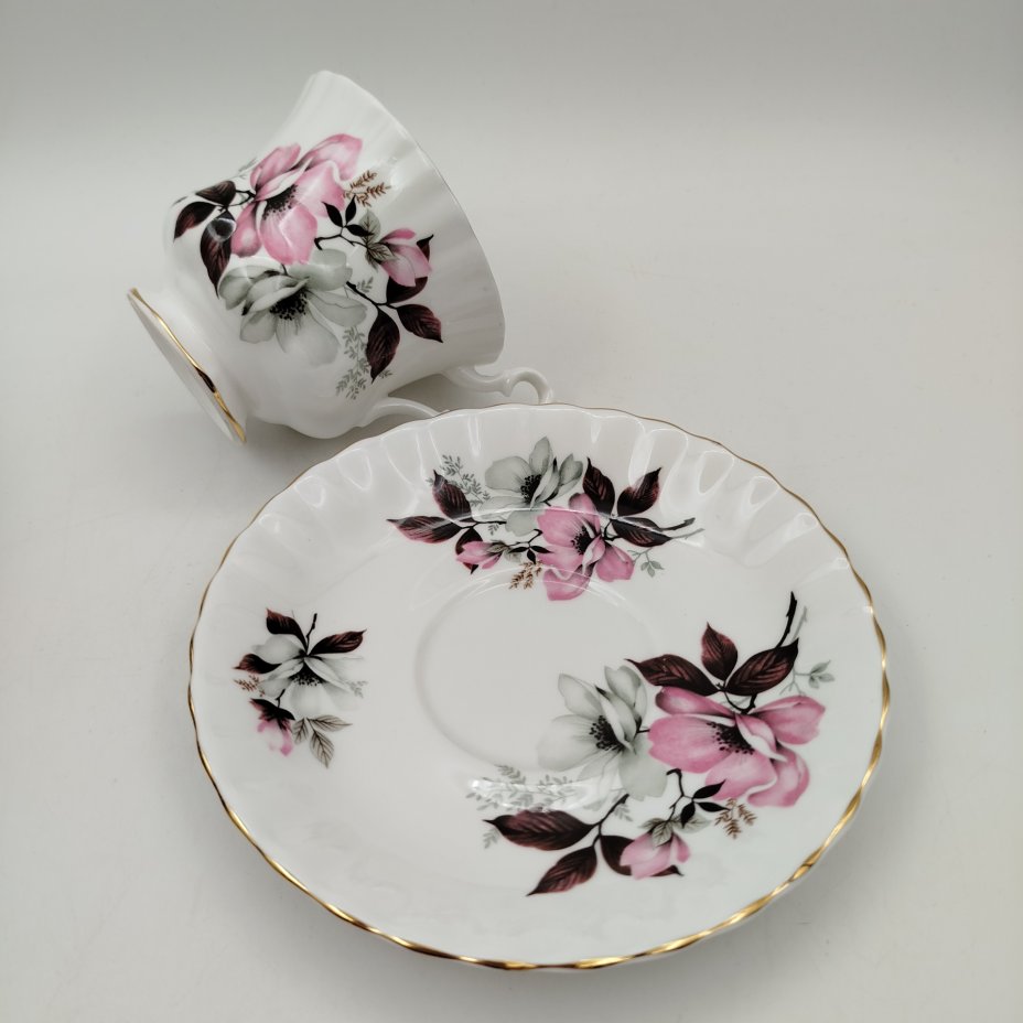 Набор из чайной и кофейной пары с цветочным декором, серия "Berkeley", фарфор, деколь, золочение, Royal Albert, Великобритания, 1970-1980 гг.