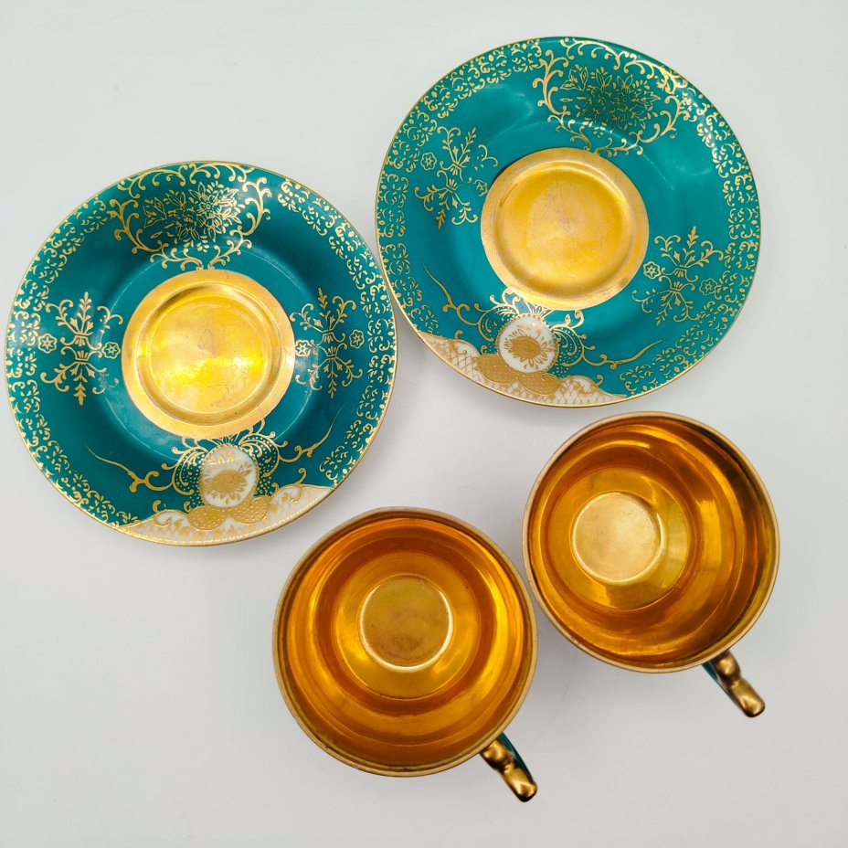 Набор из 4-х кофейных пар с растительным орнаментом, фарфор, люстр, золочение, ГДР, 1960-1980 гг.