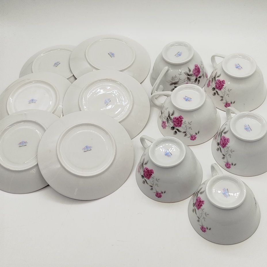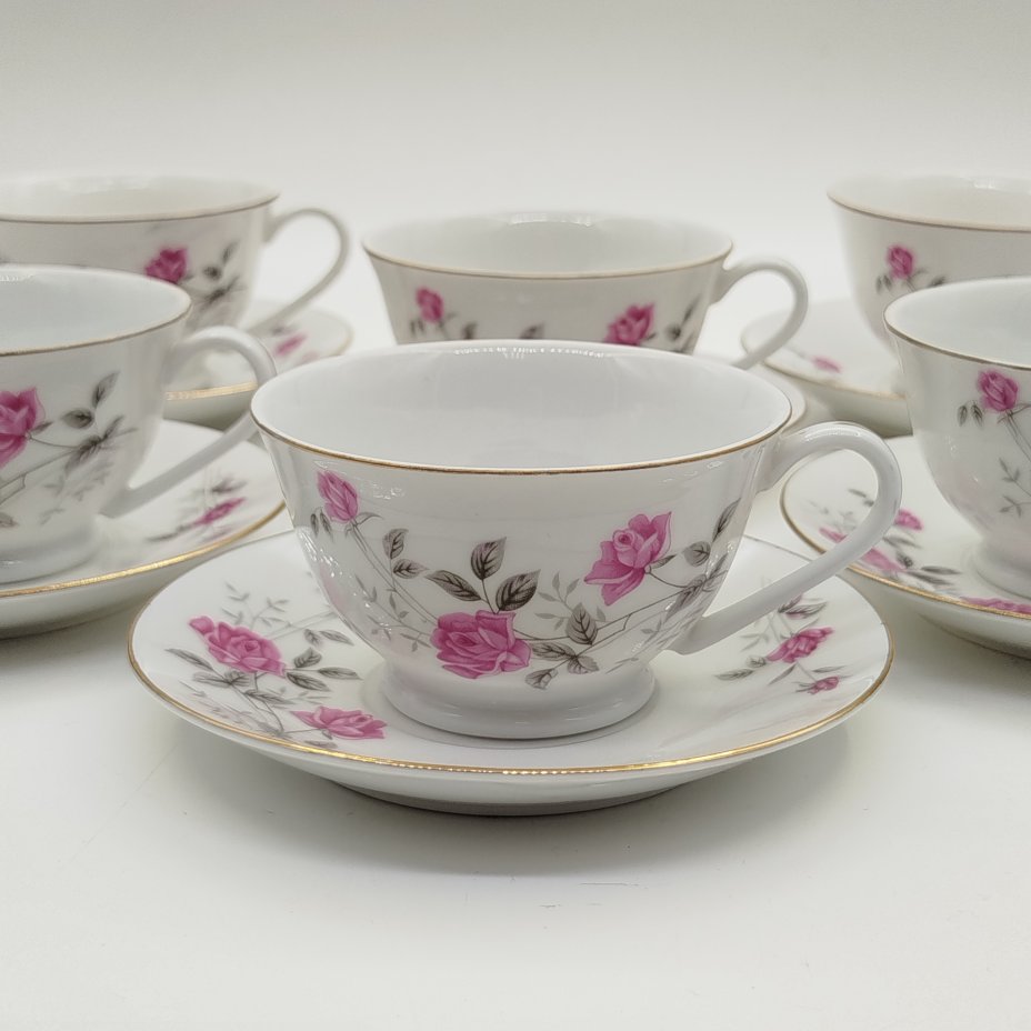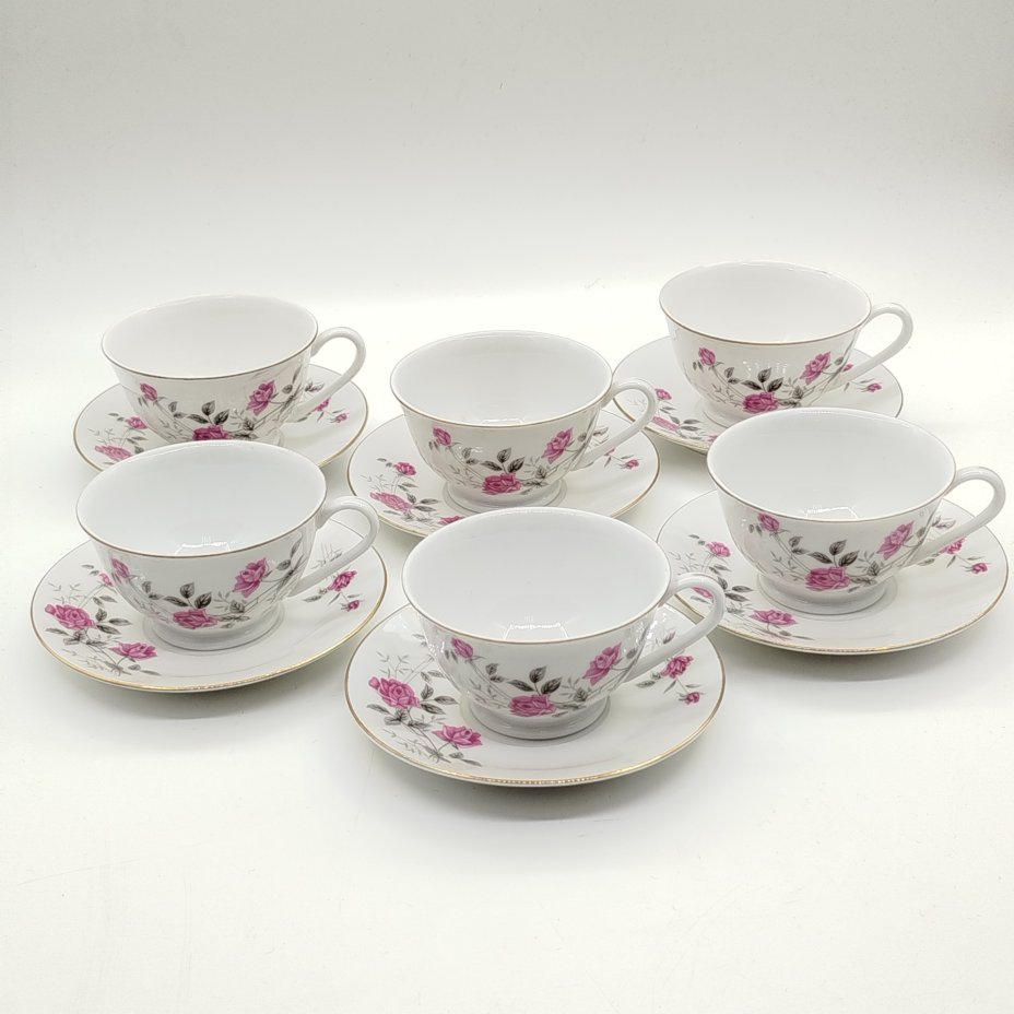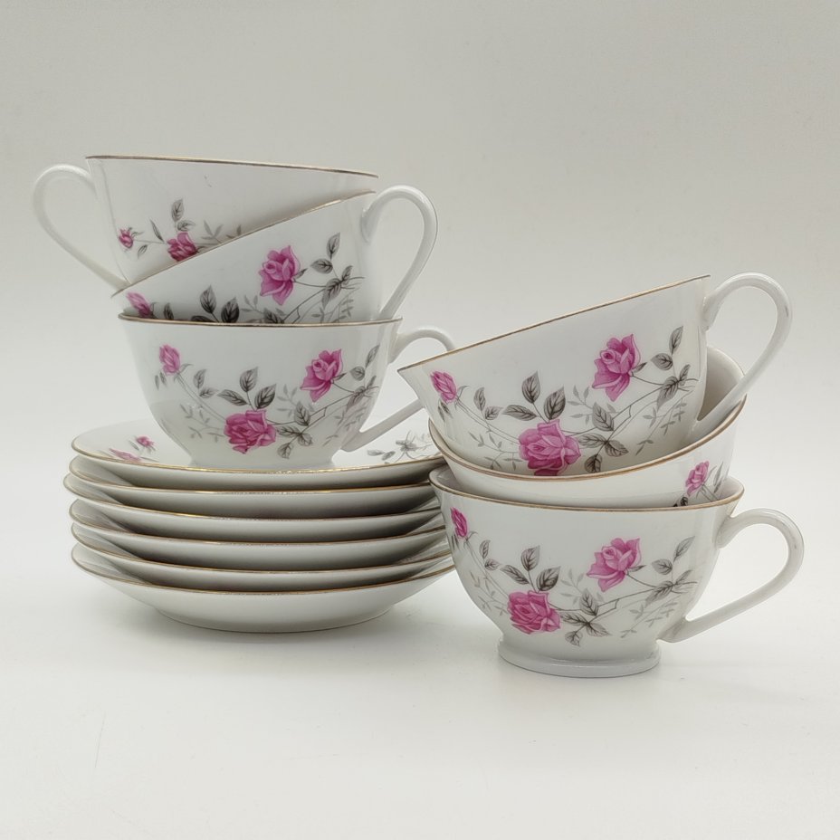 Набор из 6-ти чайных пар с изображением роз, фарфор, деколь, золочение, Китай, 1960-1980 гг.