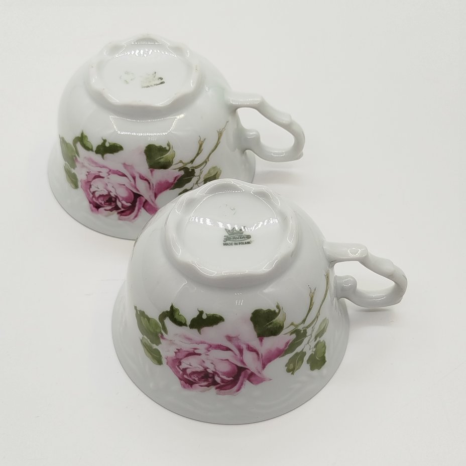 Пара чашек с декором в виде розы, фарфор, деколь, золочение, Karolina (Фарфоровая мануфактура «Каролина», Польша), Польша, 1954-1990 гг.