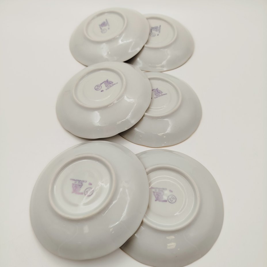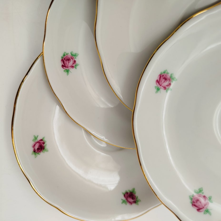Набор кофейных пар с декором в виде распустившегося цветка розы (на 6 персон), мануфактура Bohemia Ceramic Works, фарфор, деколь, золочение, Чехословакия, 1960-1980 гг.