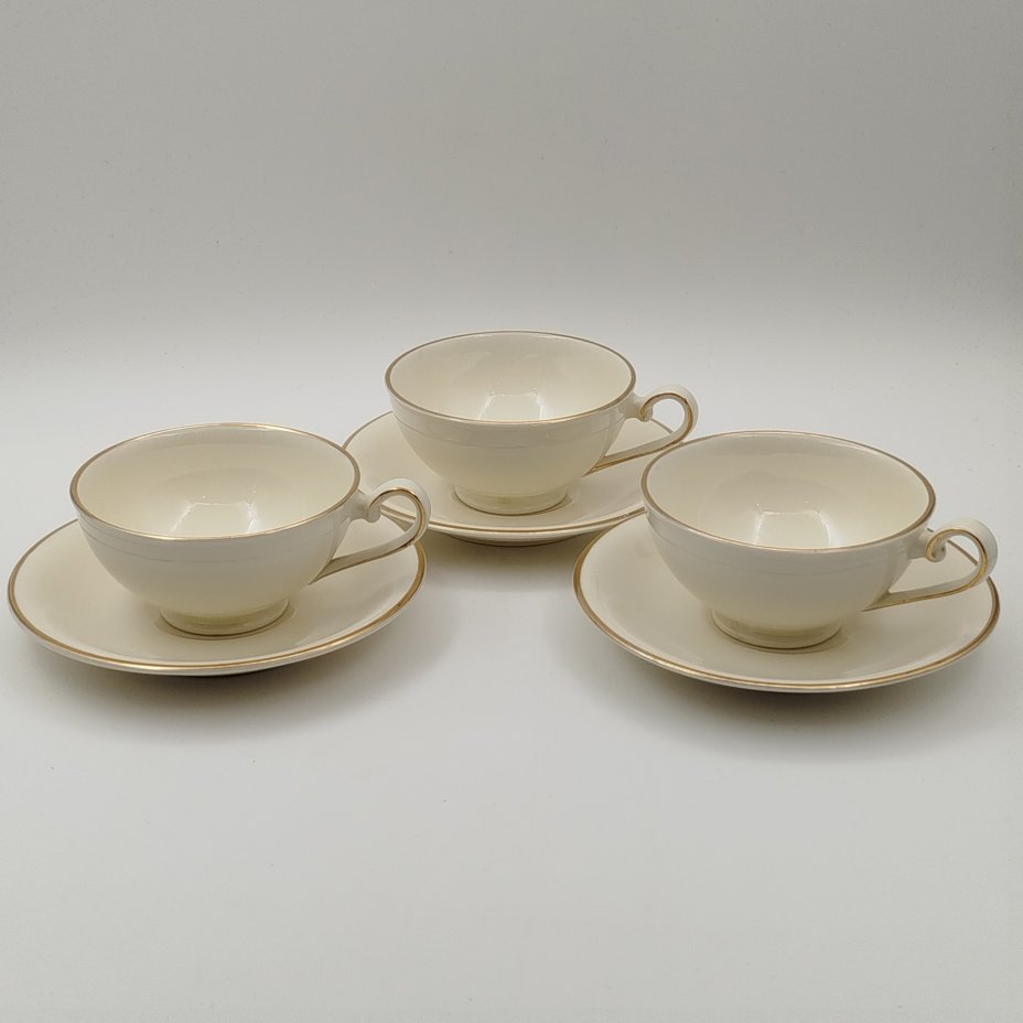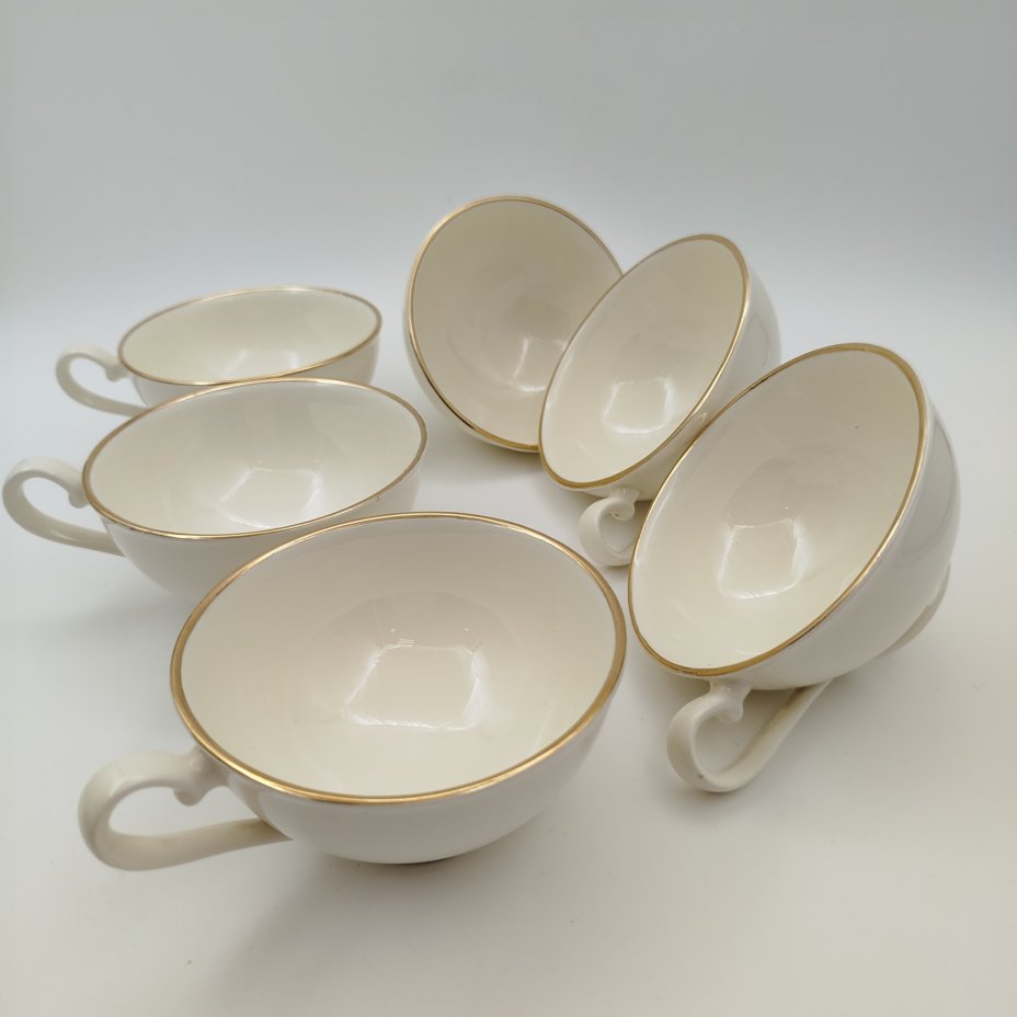 Набор чайных пар цвета слоновой кости на 6 персон, Mosa Maastrich, фаянс, золочение, Нидерланды, 1960-1980 гг.