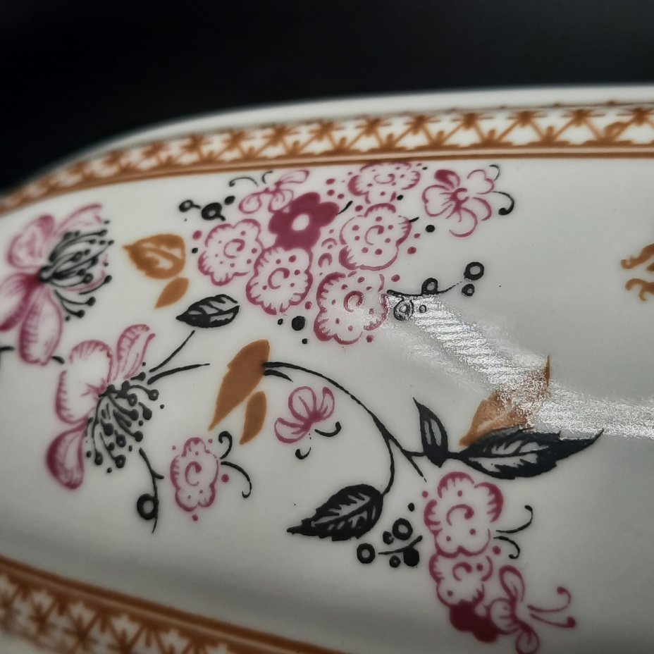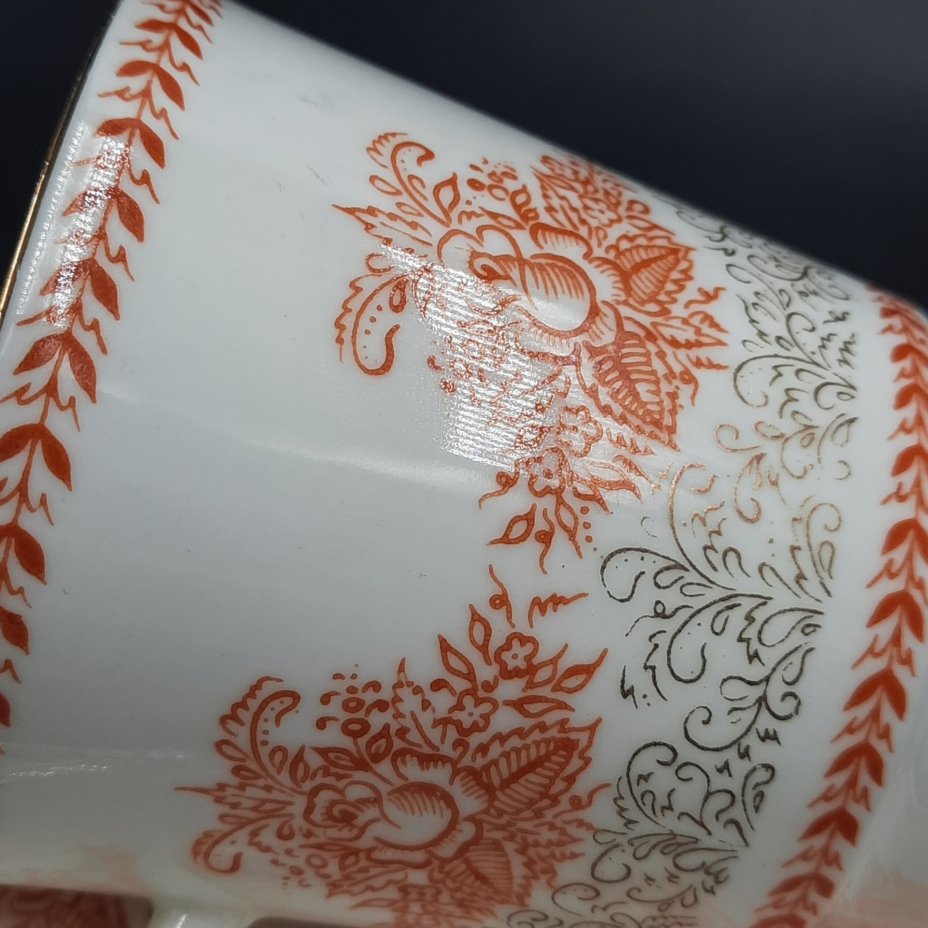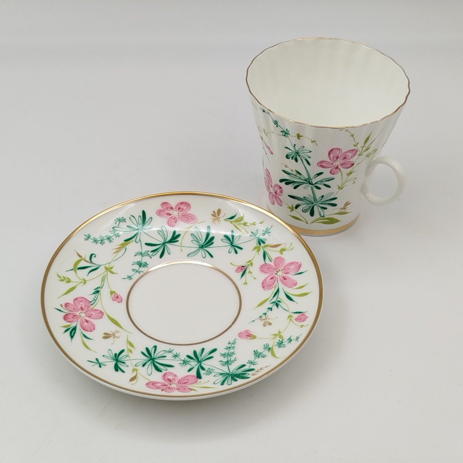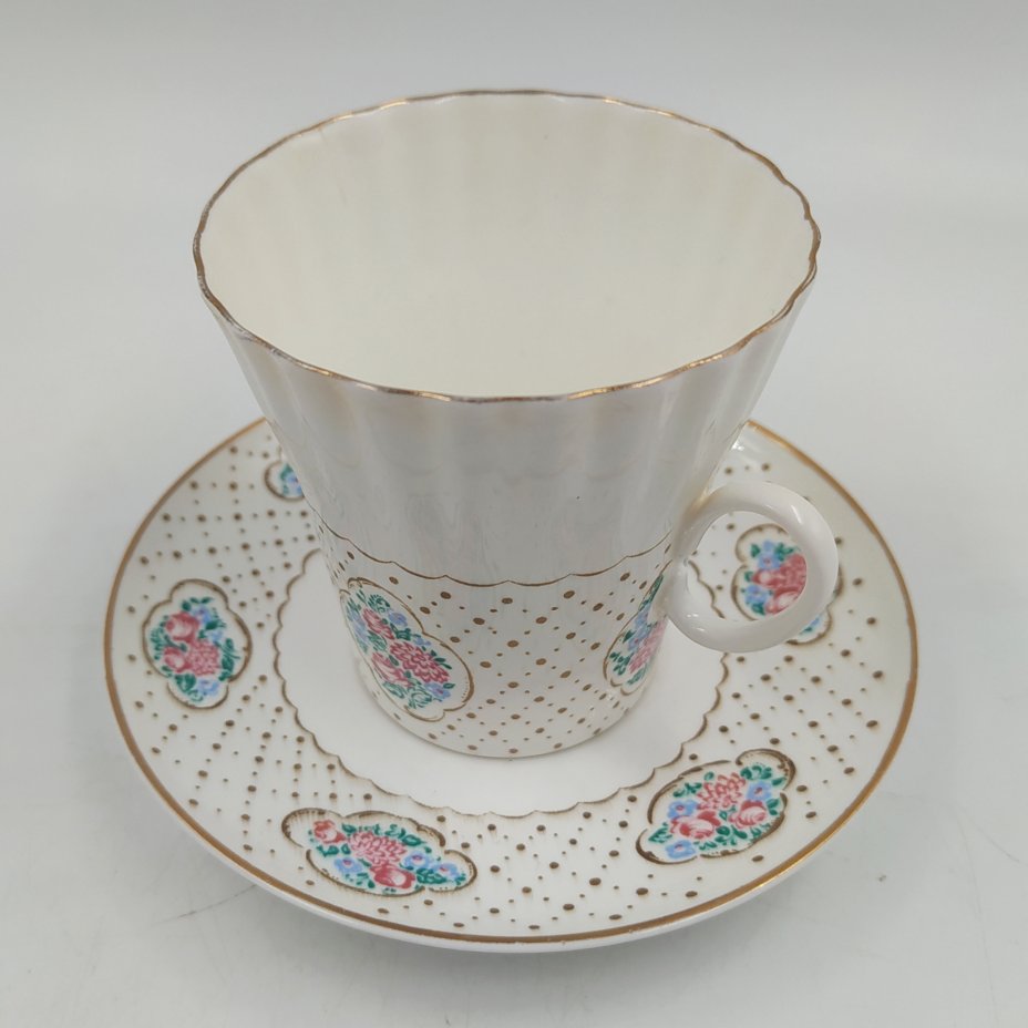 Кофейная пара "Розовые веточки" ("Золотые бабочки"), форма "Майская", автор формы Э.М. Криммер, художник В.Г.Богданов, фарфор, деколь, Ленинградский фарфоровый завод (ЛФЗ), СССР, 1970-1986 гг.