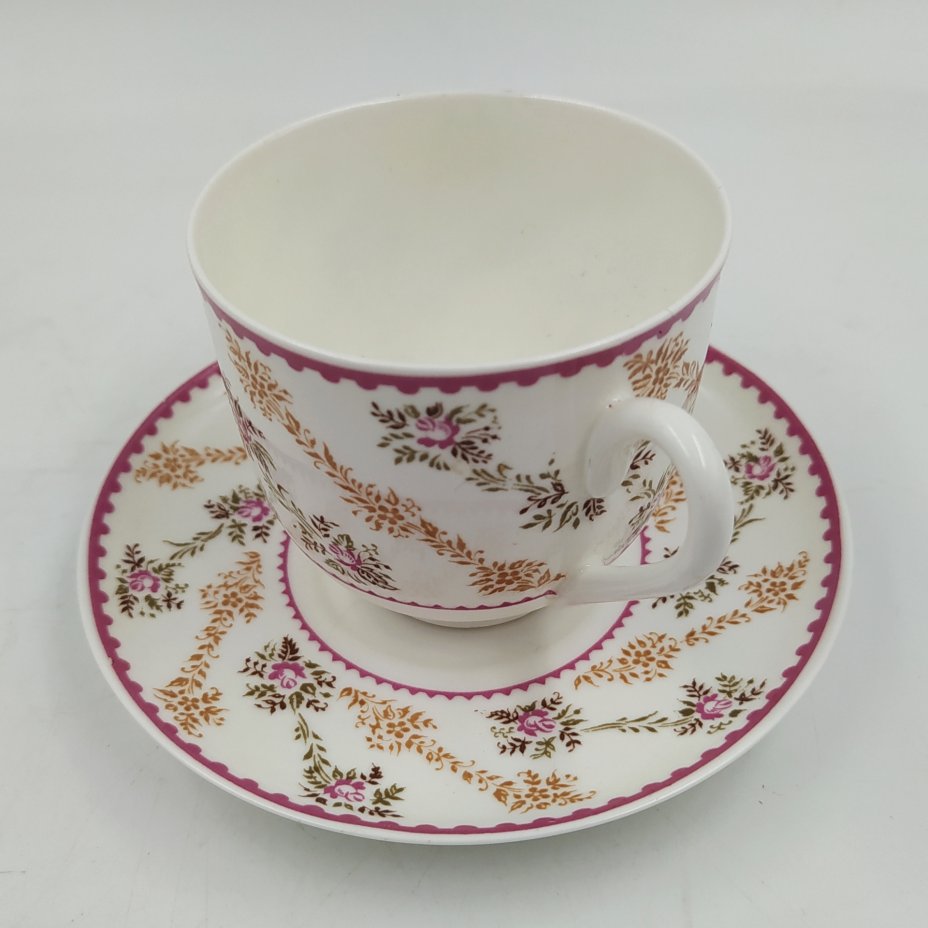 Пара кофейная с цветочным орнаментом в розовой гамме, фарфор, деколь, золочение, Ленинградский фарфоровый завод (ЛФЗ), СССР, 1970-1991 гг.