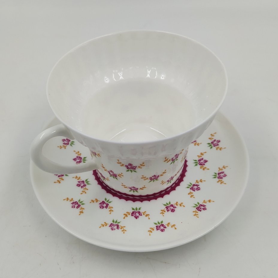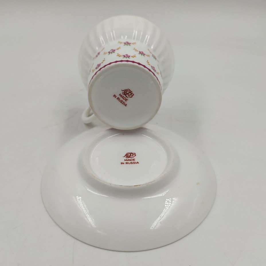 Пара кофейная с декором в виде розочек (форма "Волна"), фарфор, деколь, Ленинградский фарфоровый завод (ЛФЗ), СССР, 1992-2001 гг.