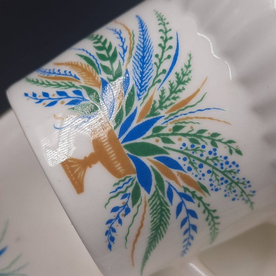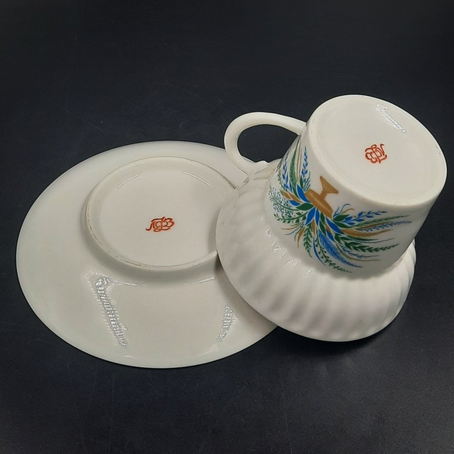 Пара кофейная с декором в виде гирлянд (форма "Волна"), фарфор, деколь, Ленинградский фарфоровый завод (ЛФЗ), СССР, 1970-1992 гг.
