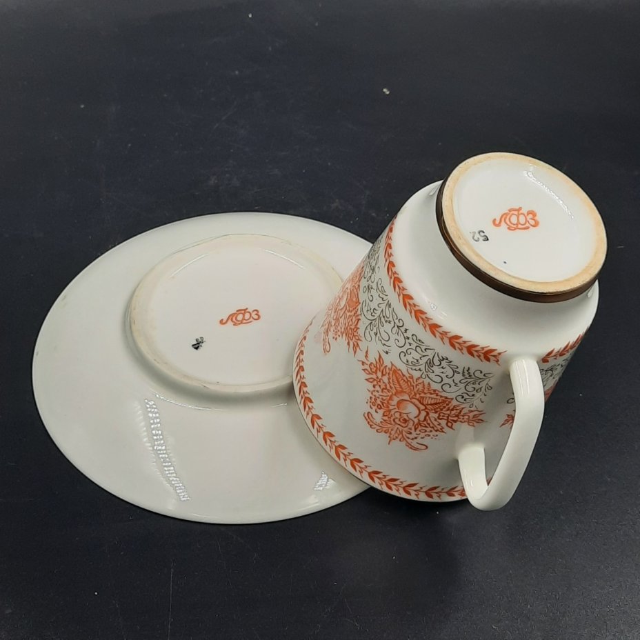 Пара чайная "Жар-птица", фарфор, деколь, золочение, Ленинградский фарфоровый завод (ЛФЗ), СССР, 1960-1970 гг.