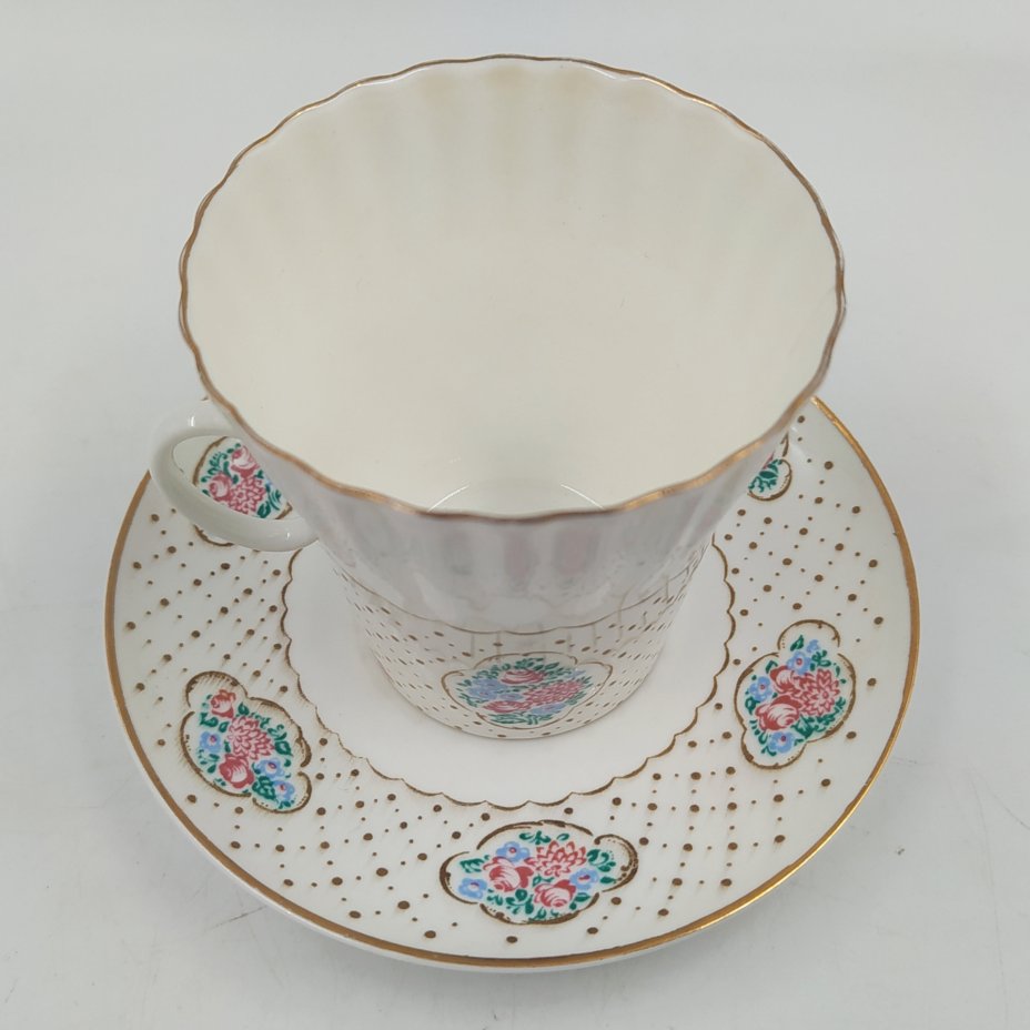 Чайно-кофейная пара, форма "Витая", автор формы А.И.Борисов, костяной фарфор, деколь, золочение, Ленинградский фарфоровый завод (ЛФЗ), СССР, 1970-1980 гг.