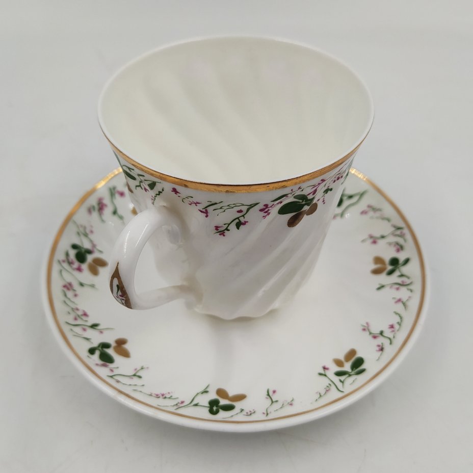 Пара кофейная с растительным орнаментом, форма "Витая", фарфор, деколь, золочение, Ленинградский фарфоровый завод (ЛФЗ), СССР, 1970-1992 гг.