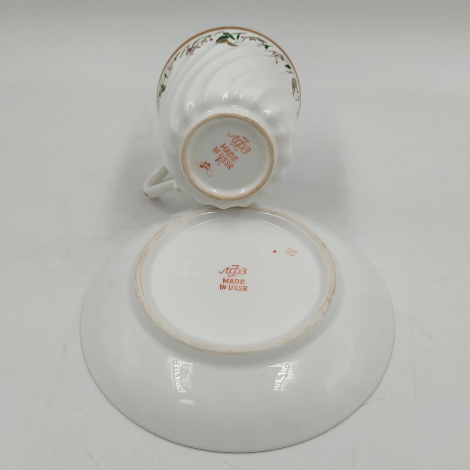 Пара кофейная "8 марта" с растительным декором, фарфор, деколь, золочение, Ленинградский фарфоровый завод (ЛФЗ), СССР, 1970-1992 гг.