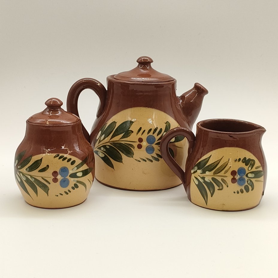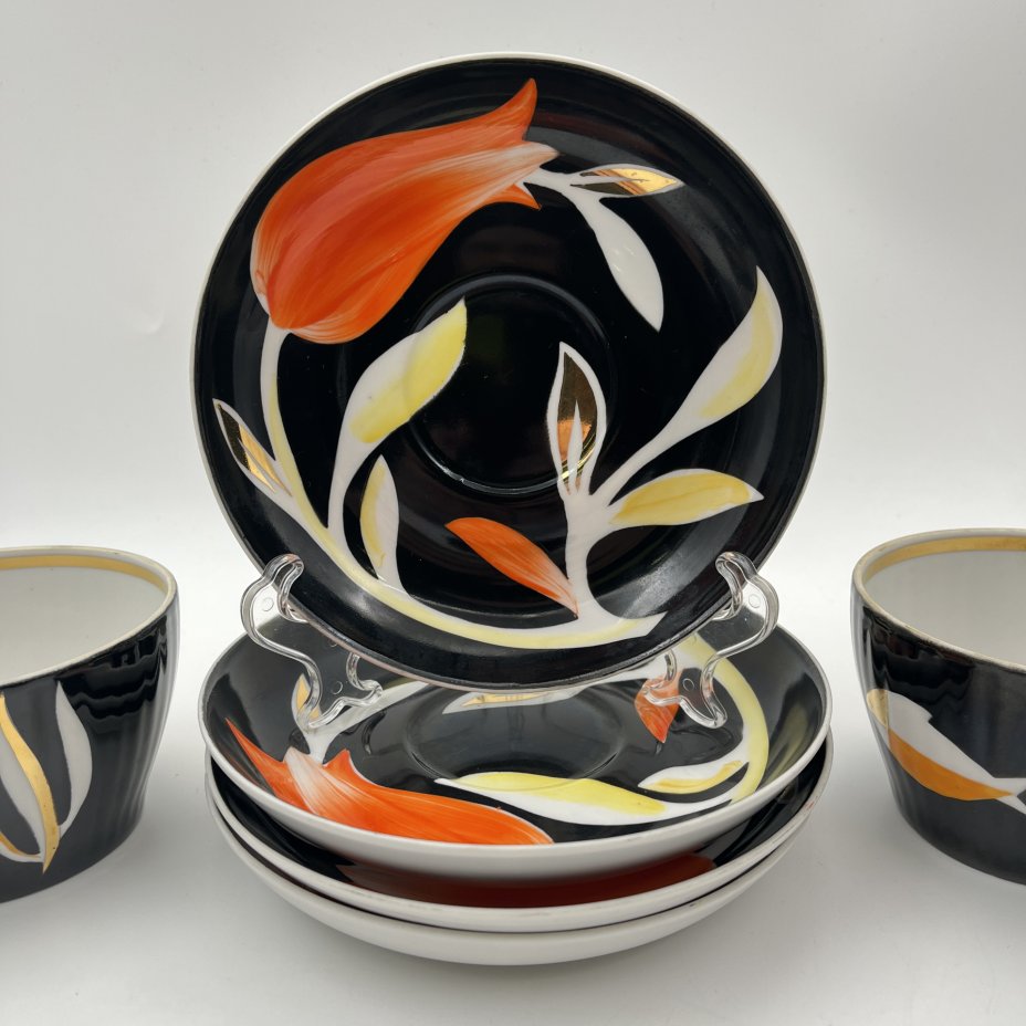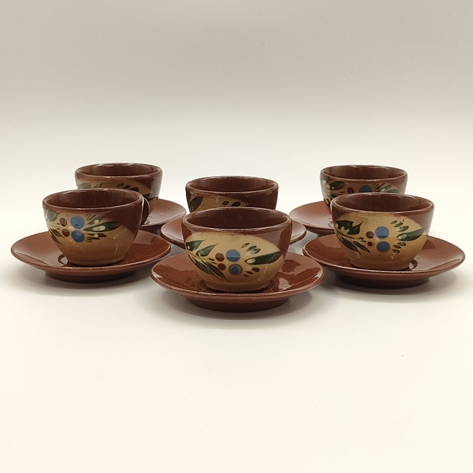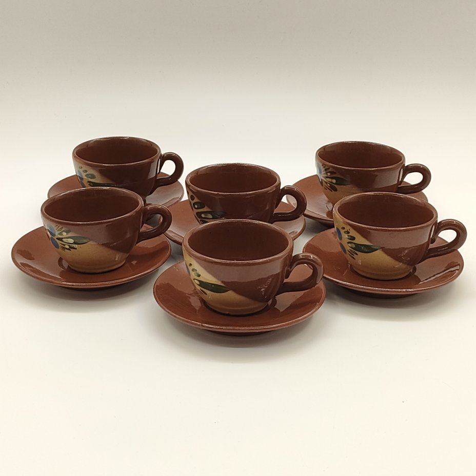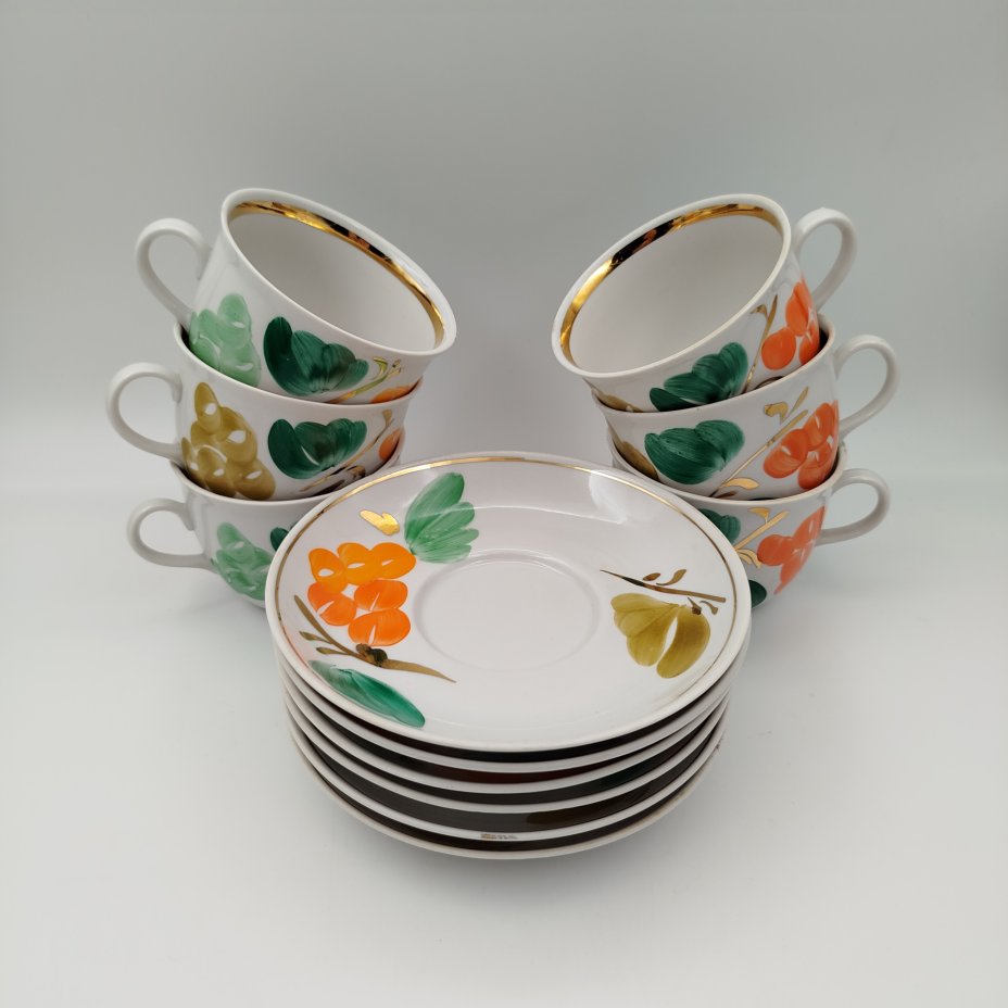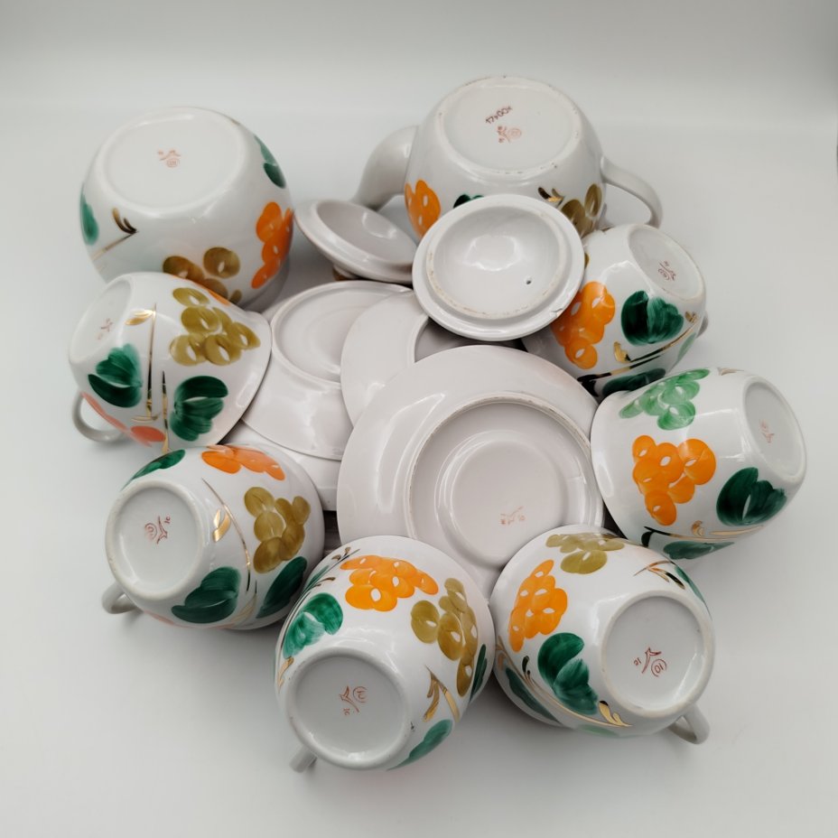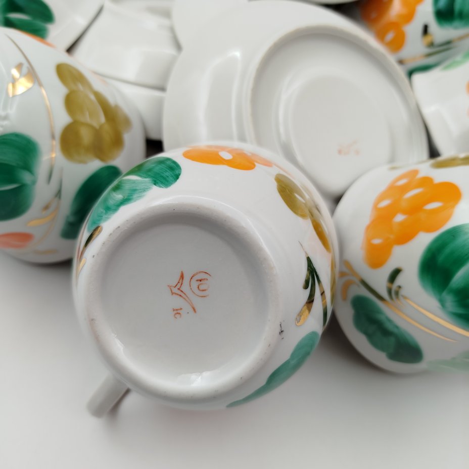 Сервиз чайно-кофейный на 6 персон, украшенный растительным декором, керамика, глазурь, роспись, СССР, 1970-1990 гг.