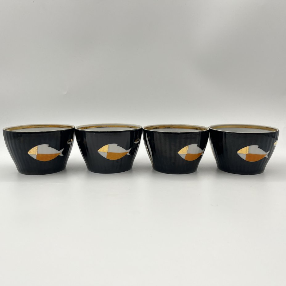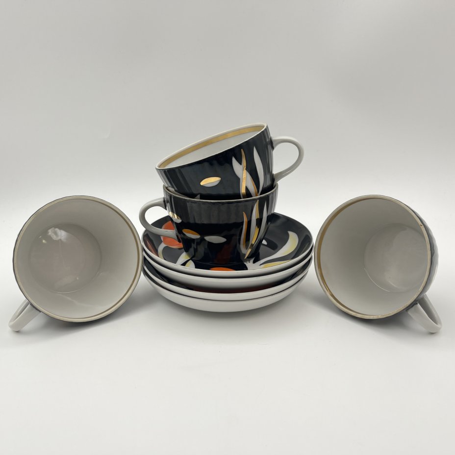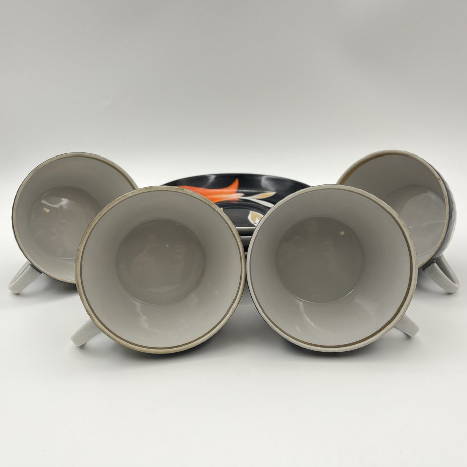 Набор из 4-х чайных пар из сервиза "Рыбки", фарфор, рытье, роспись, золочение, Дулевский фарфоровый завод (Дулёво), СССР, 1968-1991 гг.