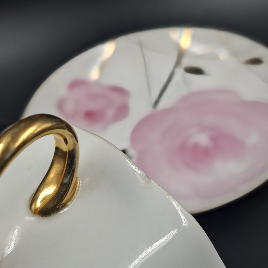Сервиз чайный "Роза в вечернем саду" на 2 персоны (11 предметов), форма "Тюльпан", автор формы С.Е. Яковлева, автор росписи Л.Р. Афанасьева, фарфор, роспись, деколь, золочение, Ленинградский фарфоровый завод (ЛФЗ), СССР, 1986-1991 гг.