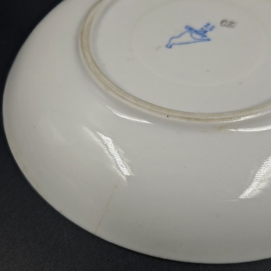 Набор из 3-х блюдец и 4-х пирожковых тарелок из сервиза "Марианна", автор формы Эрик Эллер, автор рисунка Беатрис Карклиня, фарфор, крытье, деколь, золочение, Рижский фарфорово-фаянсовый завод, СССР, 1970-1980 гг.
