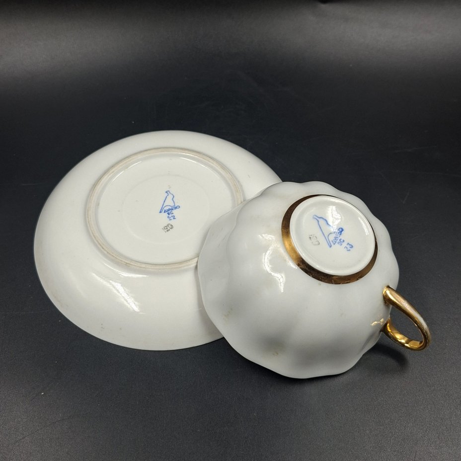 Пара чайная из сервиза "Весенний", форма "Белый лебедь", автор формы О.М. Михигули, фарфор, роспись, золочение, Дулевский фарфоровый завод (Дулёво), СССР, 1968-1991 гг.