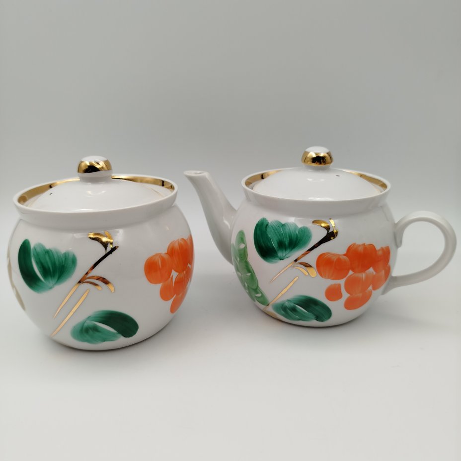 Сервиз чайный "Вишня" на 6 персон (14 предметов), фарфор, роспись, золочение, Краснодарский фарфорово-фаянсовый завод «Чайка», СССР, 1960-1992 гг.