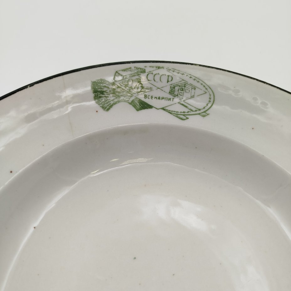 Набор из шести суповых тарелок с геометрическим декором, фарфор, деколь, Коростенский фарфоровый завод (КФЗ), СССР, 1955-1962 гг.