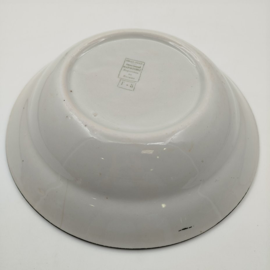 Блюдо сервировочное (глубокое) "ВСЕНАРПИТ СССР" (агитация), фарфор, деколь, Коростенский фарфоровый завод (КФЗ), СССР, 1932-1934 гг.