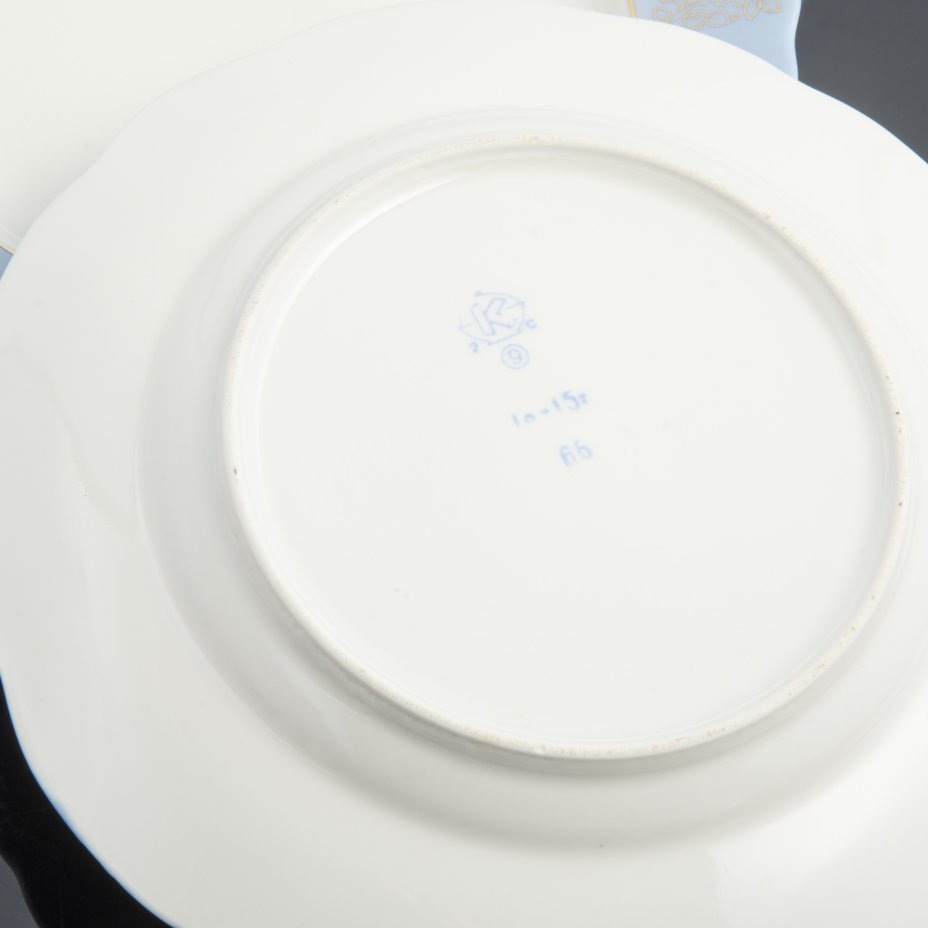 Набор из двух тарелок с цветочным декором, фарфор, золочение, Коростенский фарфоровый завод (КФЗ), СССР, 1950-1960 гг.