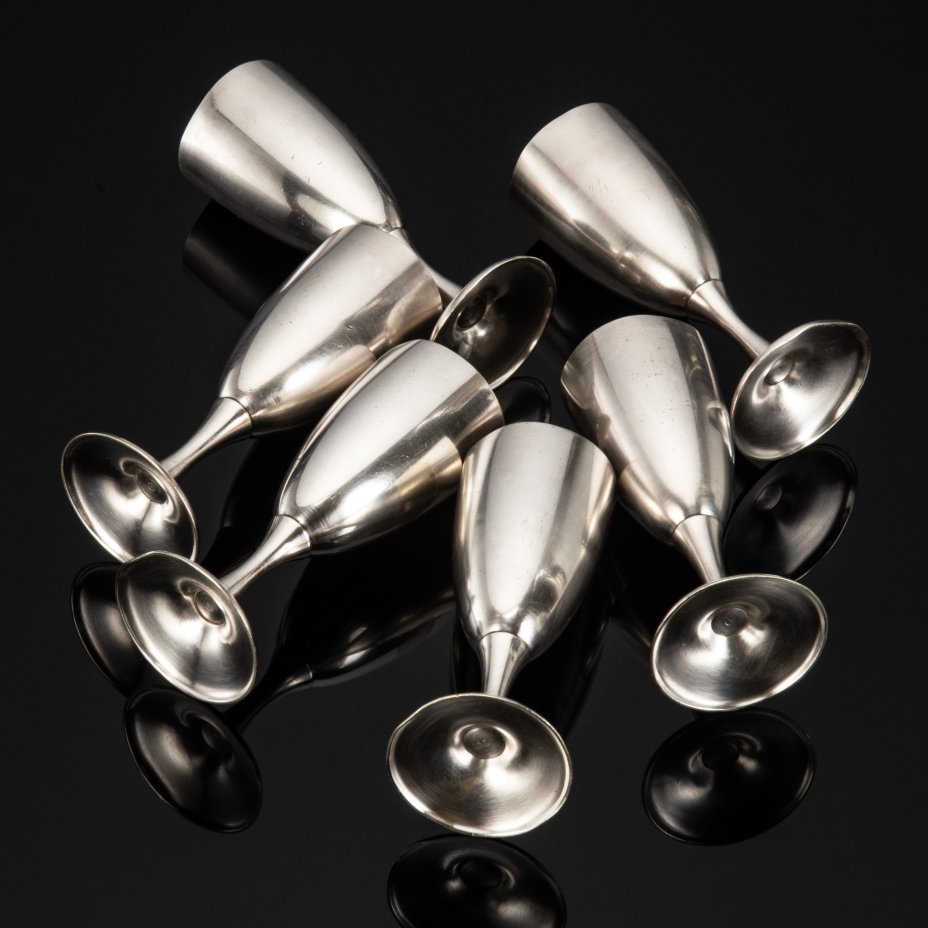 Набор бокалов для игристых вин "Staatskasino" ("Государственное казино"), металл, Arthur Krupp, Berndorf (Берндорфская фабрика металлических изделий), Австрия, 1920-1945 гг.