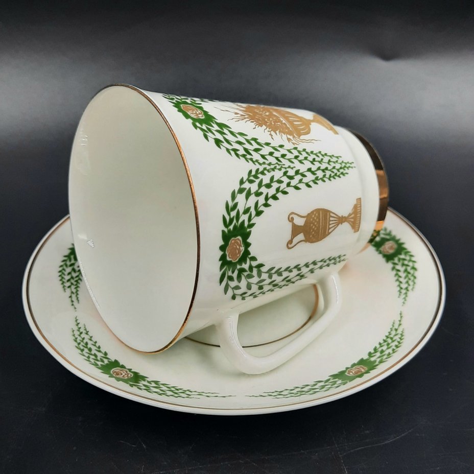 Пара кофейная "Павловск" (форма "Майская"), фарфор, деколь, золочение, Ленинградский фарфоровый завод (ЛФЗ), СССР, 1970-1992 гг.