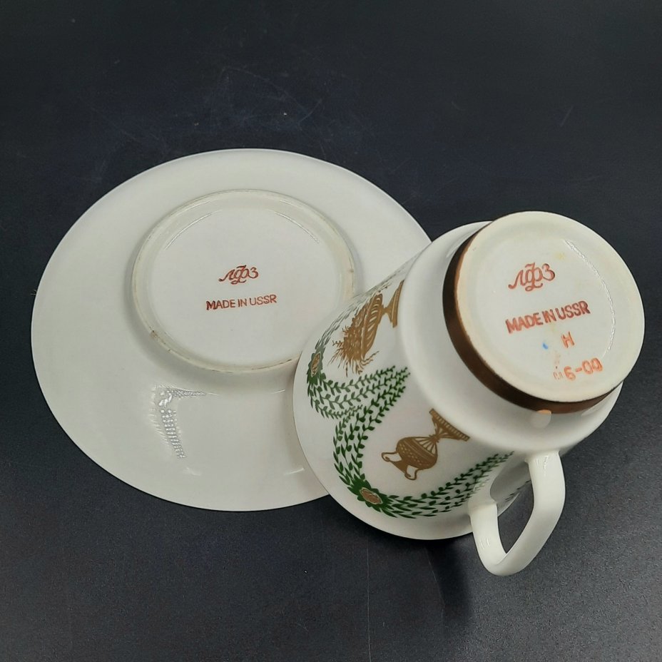 Пара чайная "Жар-птица", фарфор, деколь, золочение, Ленинградский фарфоровый завод (ЛФЗ), СССР, 1960-1970 гг.