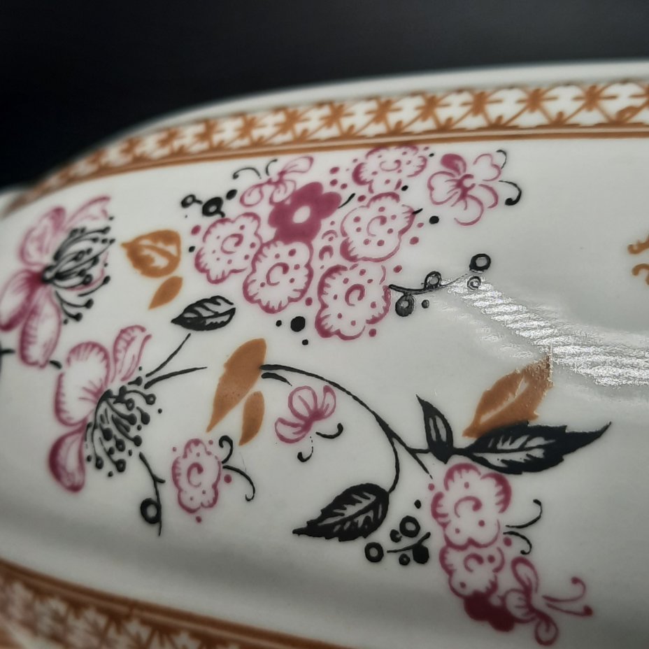 Конфетница (сухарница), украшенная цветочным декором, фарфор, роспись, золочение, Ленинградский фарфоровый завод (ЛФЗ), СССР, 1970-1990 гг.
